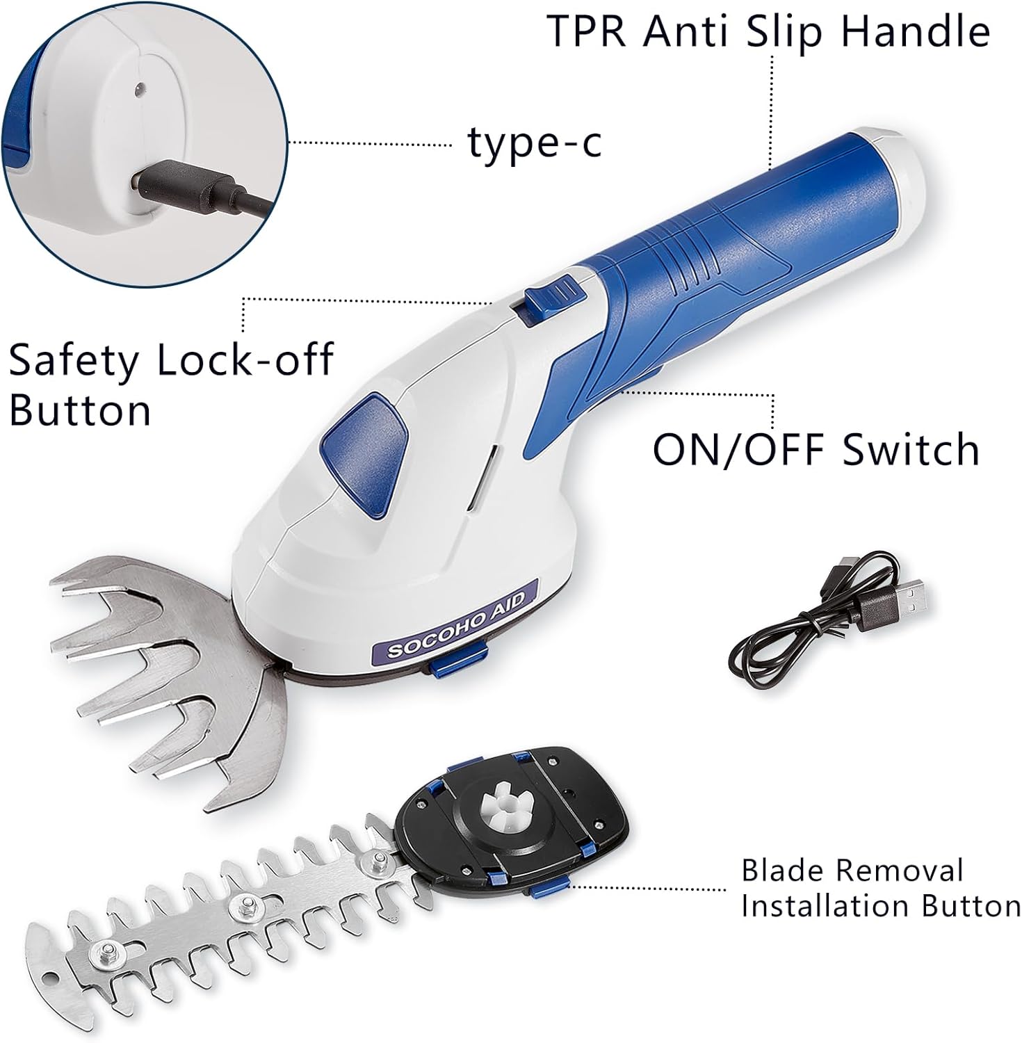 - Upgraded Power Motor: SOCOHO AID cordless bush trimmer upgraded with powerful motor the 2 in 1 design allows for quick and easy switching from trimming to mowing. even if you are a beginner, this handheld cordless lawn mower will meet your mowing needs