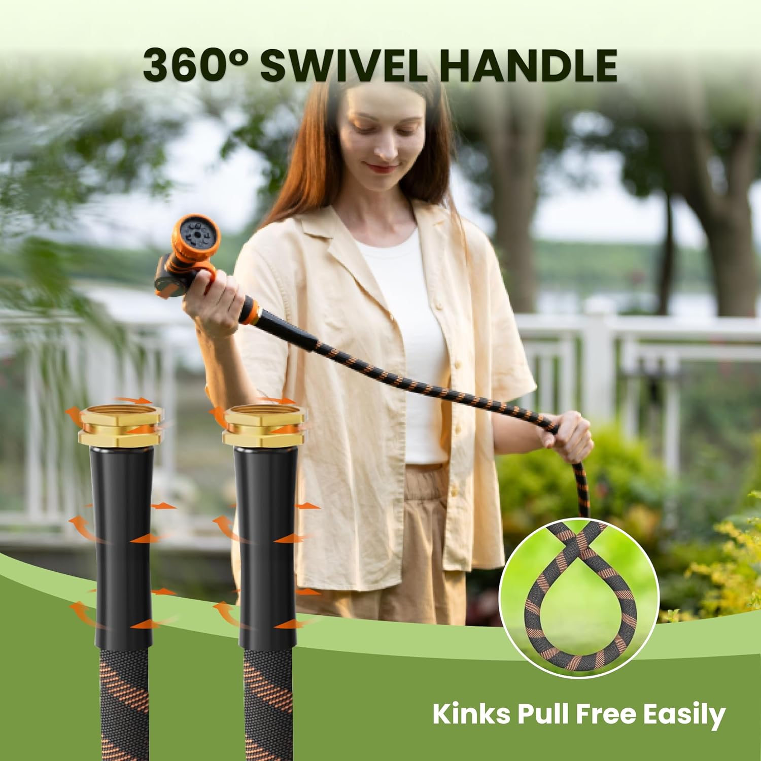 Giraffe Tools Garden Hose 75FT 1/2” Non-Expandable Lightweight Flexible Water Hoses Burst 600 psi with 9 Spray Function Nozzle Heavy Duty Hose