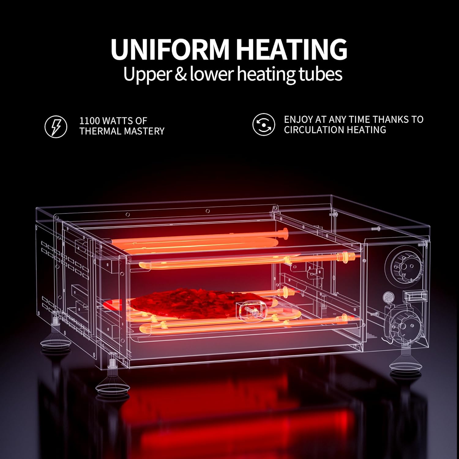 - Easy Cleaning and Maintenance: Equipped with a removable crumb tray and grilling rack , the countertop pizza oven simplifies cleaning and maintenance. The parts can be easily removed for washing, rinsed with water, dried, and placed back in the oven for hassle-free maintenance