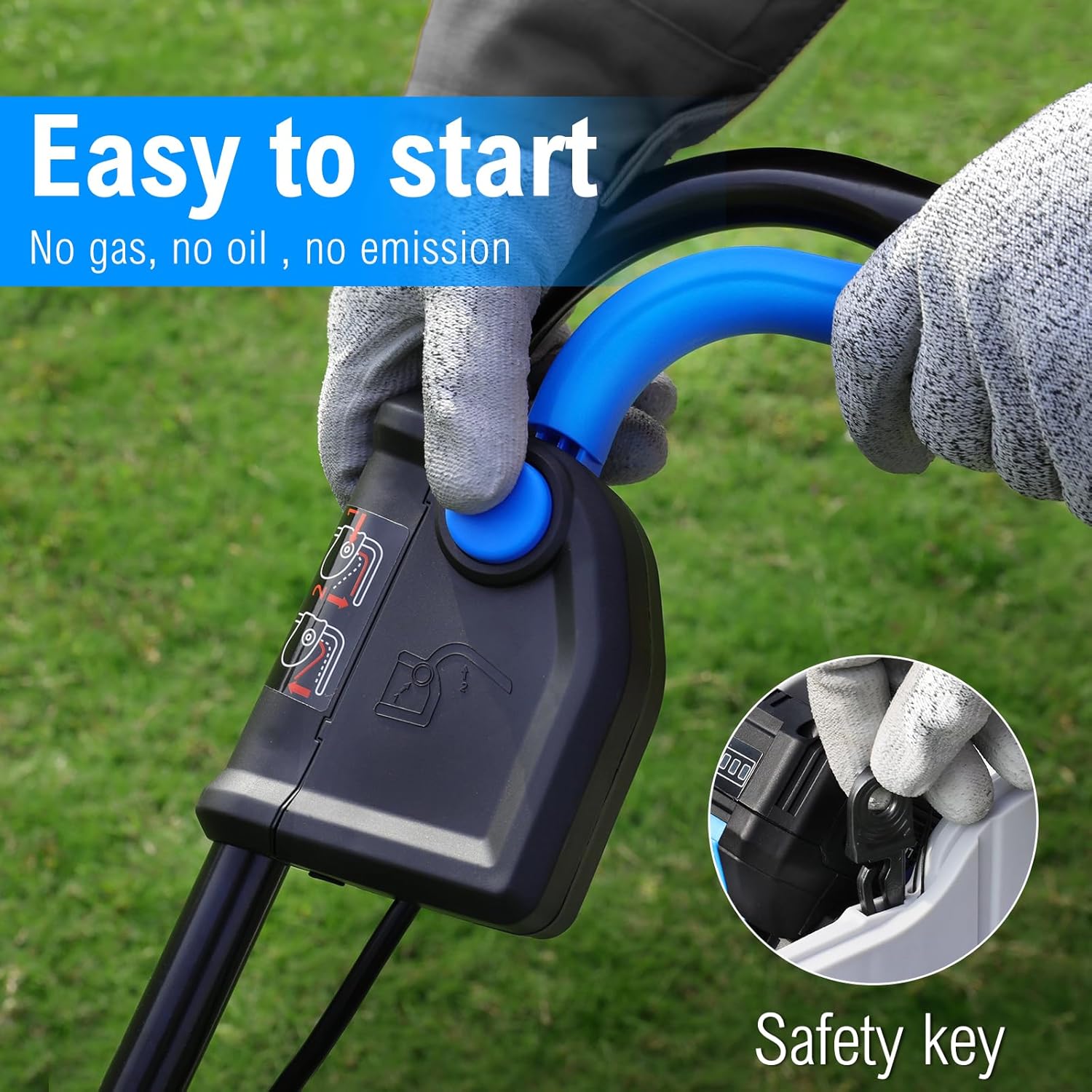 - 【Powerful Performance】:This electric lawn mower has strong mowing ability, with a working time of up to 15 minutes and a cutting area of up to 1700 sqft.Suitable for small courtyard lawn maintenance and user-friendly for female users.