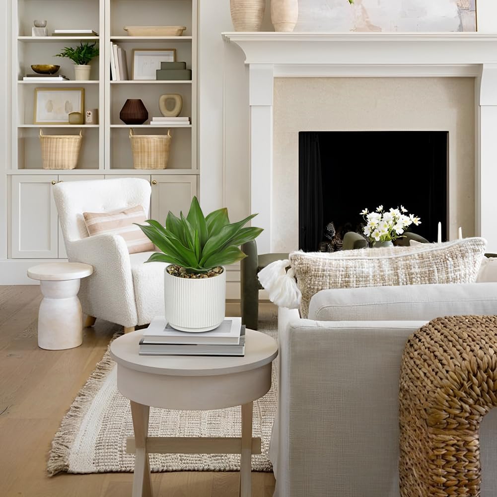 Hollyone Artificial Agave Plants Fake Succulent Agave Plant Potted in White Pot Succulents Aloe Plant for Desk Modern Office Living Room Table Shelf Home Indoor Outdoor Decor