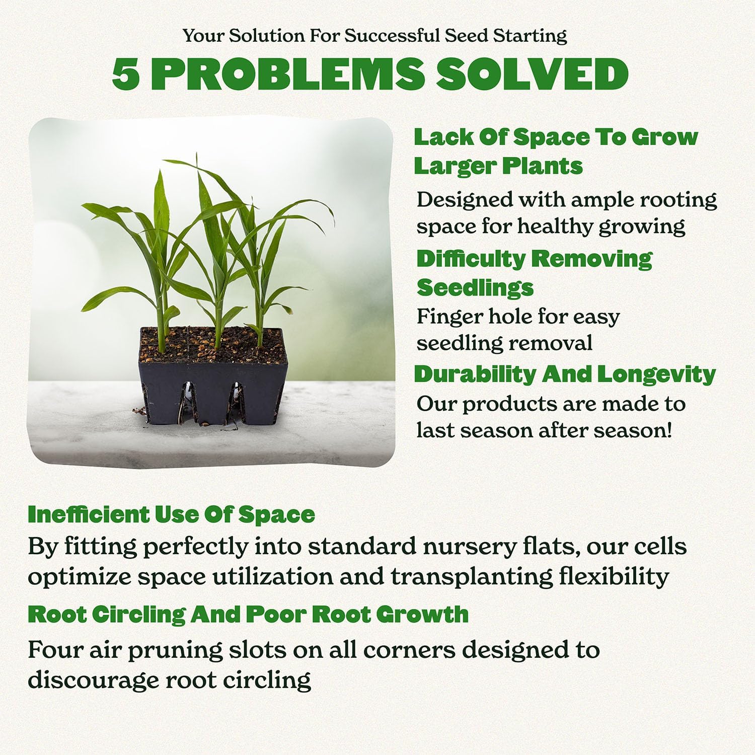 - Healthy Roots, Happy Plants: Forget root circling! Air pruning slots on all four corners of these plant germination trays and an open base encourage healthy root development. This translates to stronger, more vibrant seedlings ready to thrive in your garden.