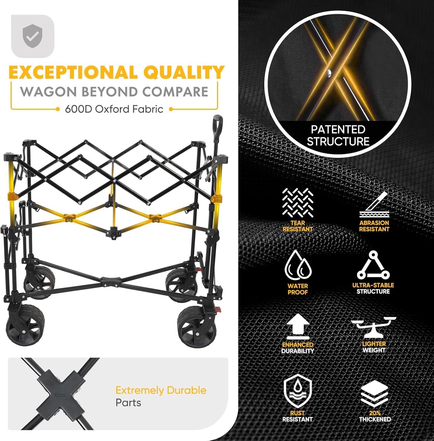 - ๐๐๐๐๐๐ ๐๐๐ฉ๐๐๐ข๐ญ๐ฒ: The patented frame structure uses pipes that are ๐๐% ๐ญ๐ก๐ข๐๐ค๐๐ซ than those of normal wagons, providing enhanced stability and security with a loading capacity of up to ๐๐๐๐ฅ๐๐ฌ. The ๐๐๐๐ ๐๐ฑ๐๐จ๐ซ๐ waterproof fabric is tough and wonโt tear even with sharp objects inside.