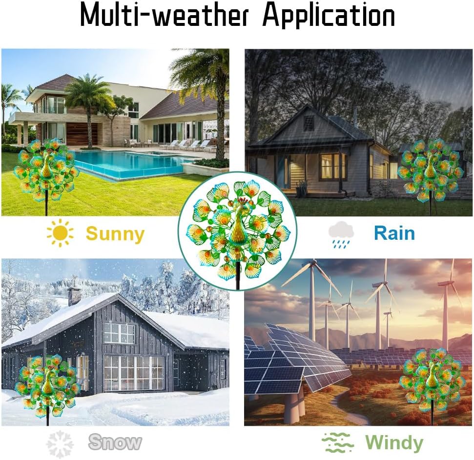 - 【Peacock Wind Sculptures】VEWOSTAR's peacock wind spinner design is unique, with windmill blades designed and developed based on the shape of peacock feathers. The bright colors of feathers paired with colorful beads make the pinwheels shine in the sunlight and rotate steadily.