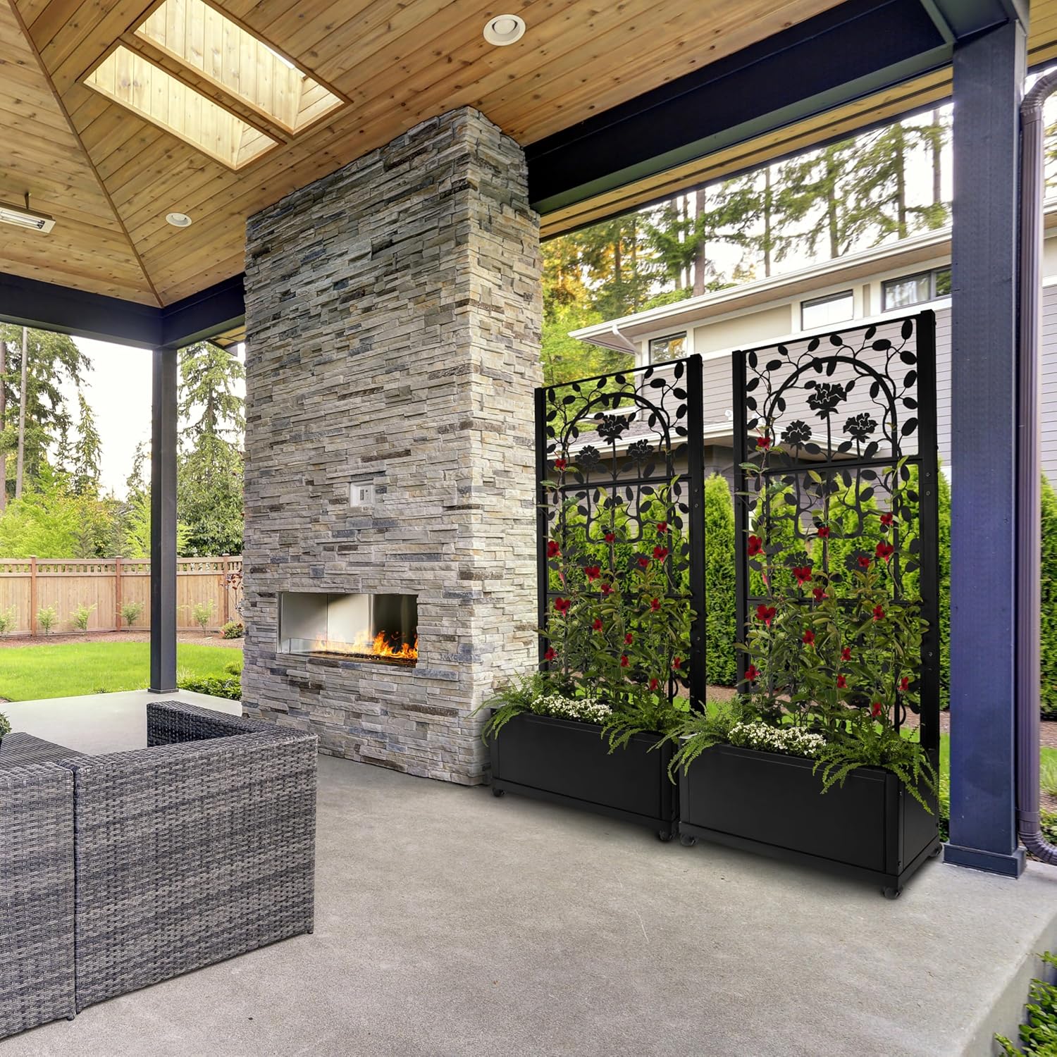 • Heavy and requires assembly - Trellis planter for indoor outdoor - This garden planter with trellis can be used with climbing plants on your deck, patio, or balcony. Use outdoors or indoors, this privacy screen with trellis has a black powder-coated finish, blends with any decor. This flower box with trellis features precision, laser cut, 16-gauge steel and can be used in residential or commercial venues.