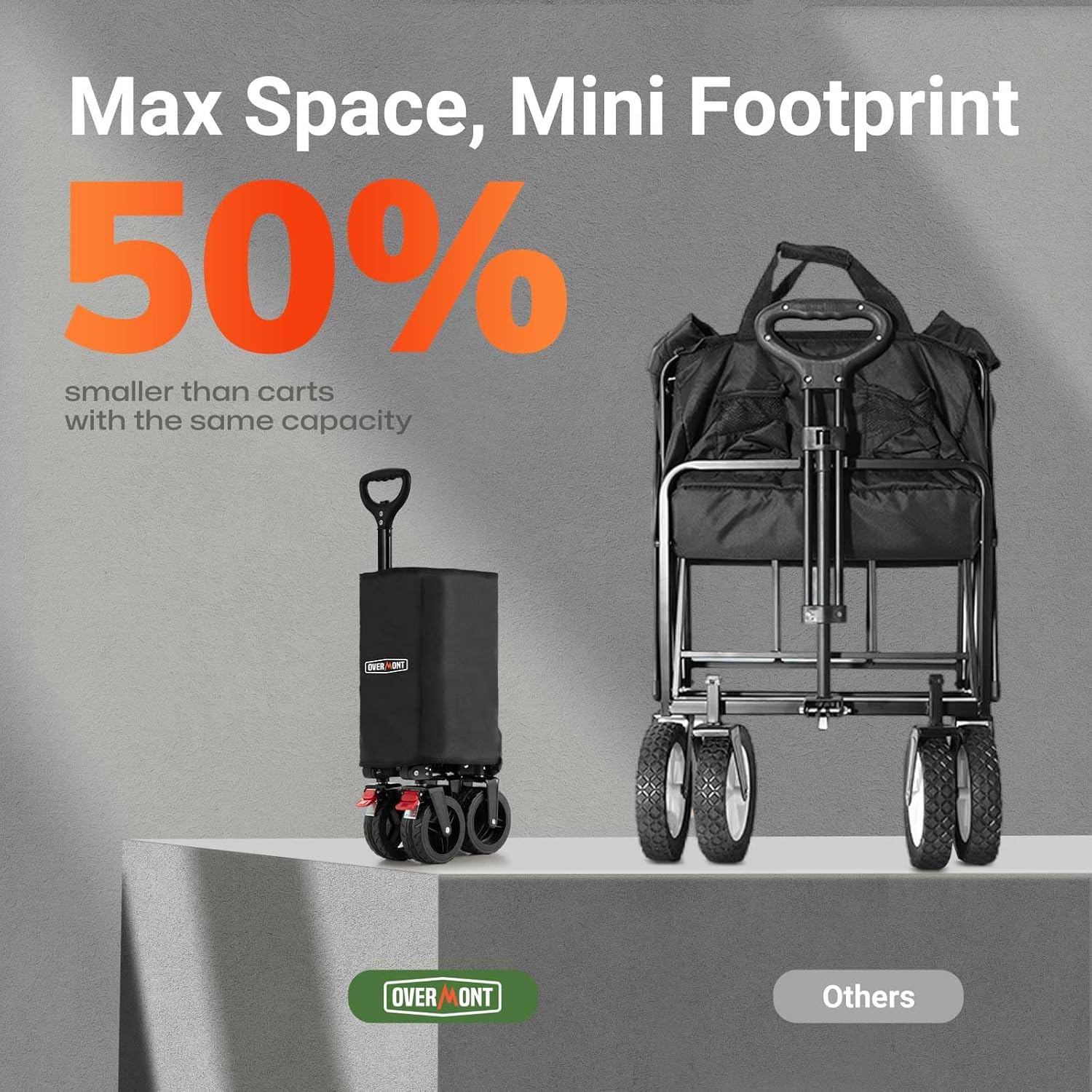 Overmont Ultra-Compact Collapsible Wagon Cart -200L Portable Folding Wagon with All-Terrain Wheels Utility for Beach, Grocery Shopping, Camping, and Gardening โ 330lbs Load Capacity Black