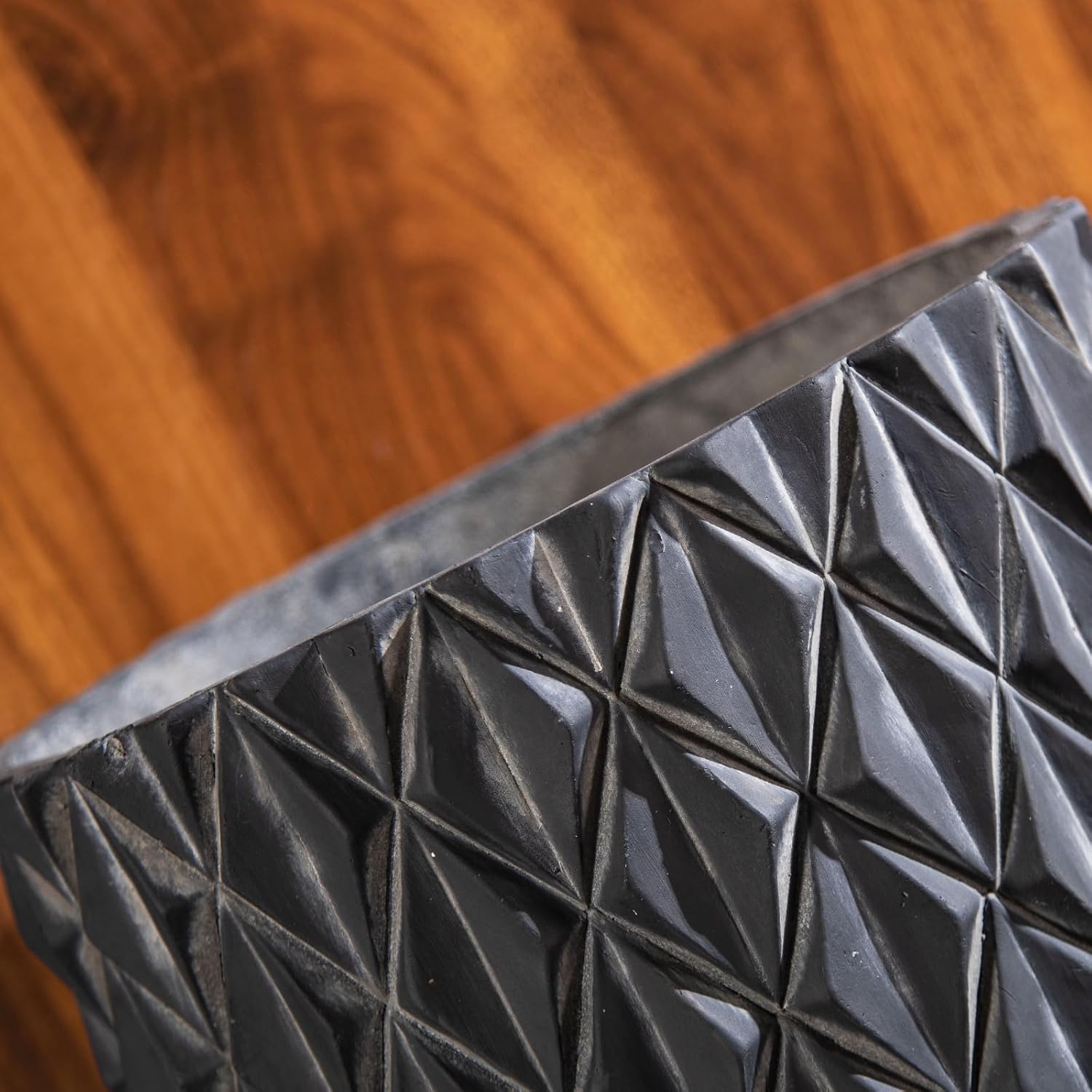 - [Unique Design]:The cylindrical cement planters used the Black lozenge pattern designs, giving the planters a unique aesthetic appeal and adds unique visual effect to the outdoor space
