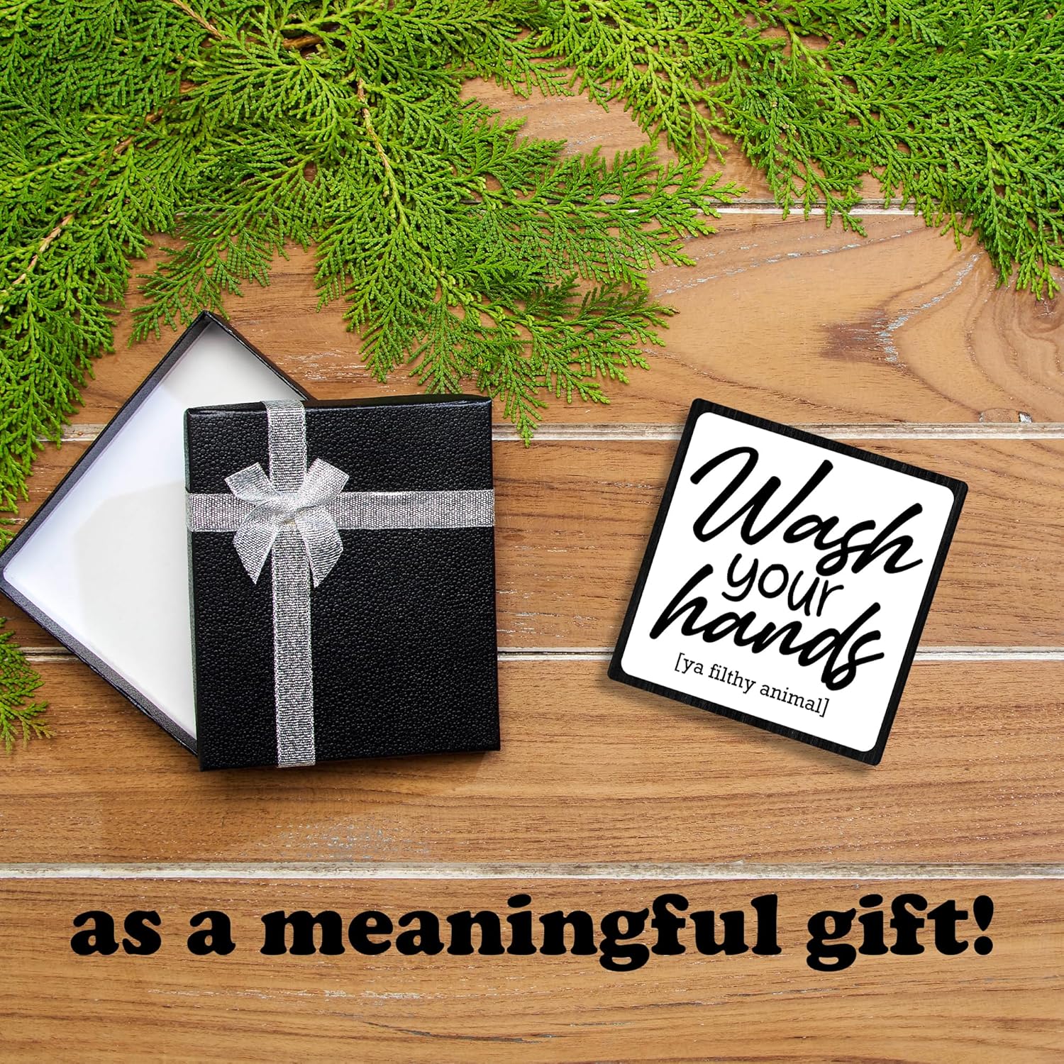 5" Wooden Plaque, Wash Your Hands, Bathroom Toilet Decor With 1 Metal Support, Shelf Decoration, Rustic Farmhouse Home Guest Room Accessories -B14