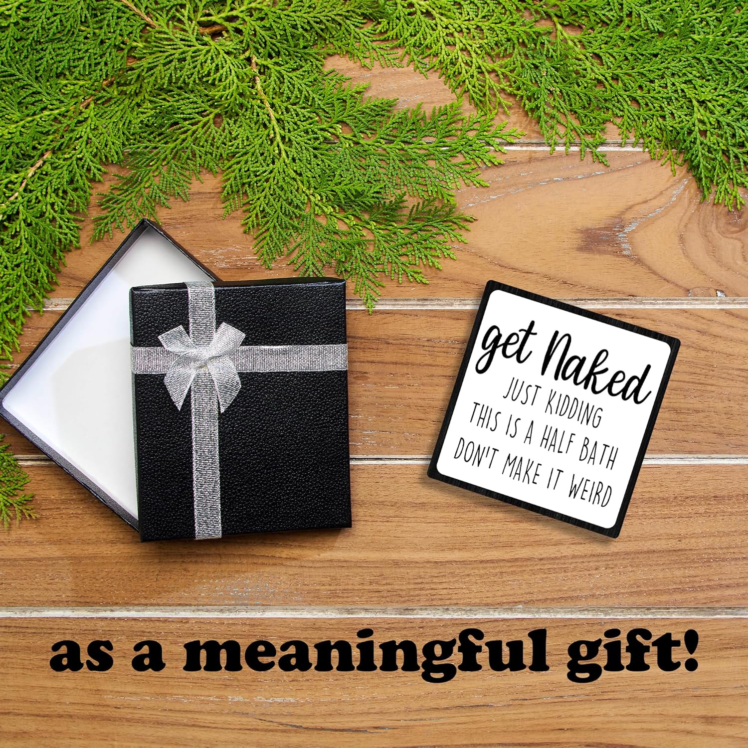5" Wooden Plaque,Get Naked Just Kidding This Is A Half Bath,Bathroom Toilet Decor With 1 Metal Support, Bathroom Shelf Decoration, Rustic Farmhouse Home Guest Room Bathroom Accessories -B13