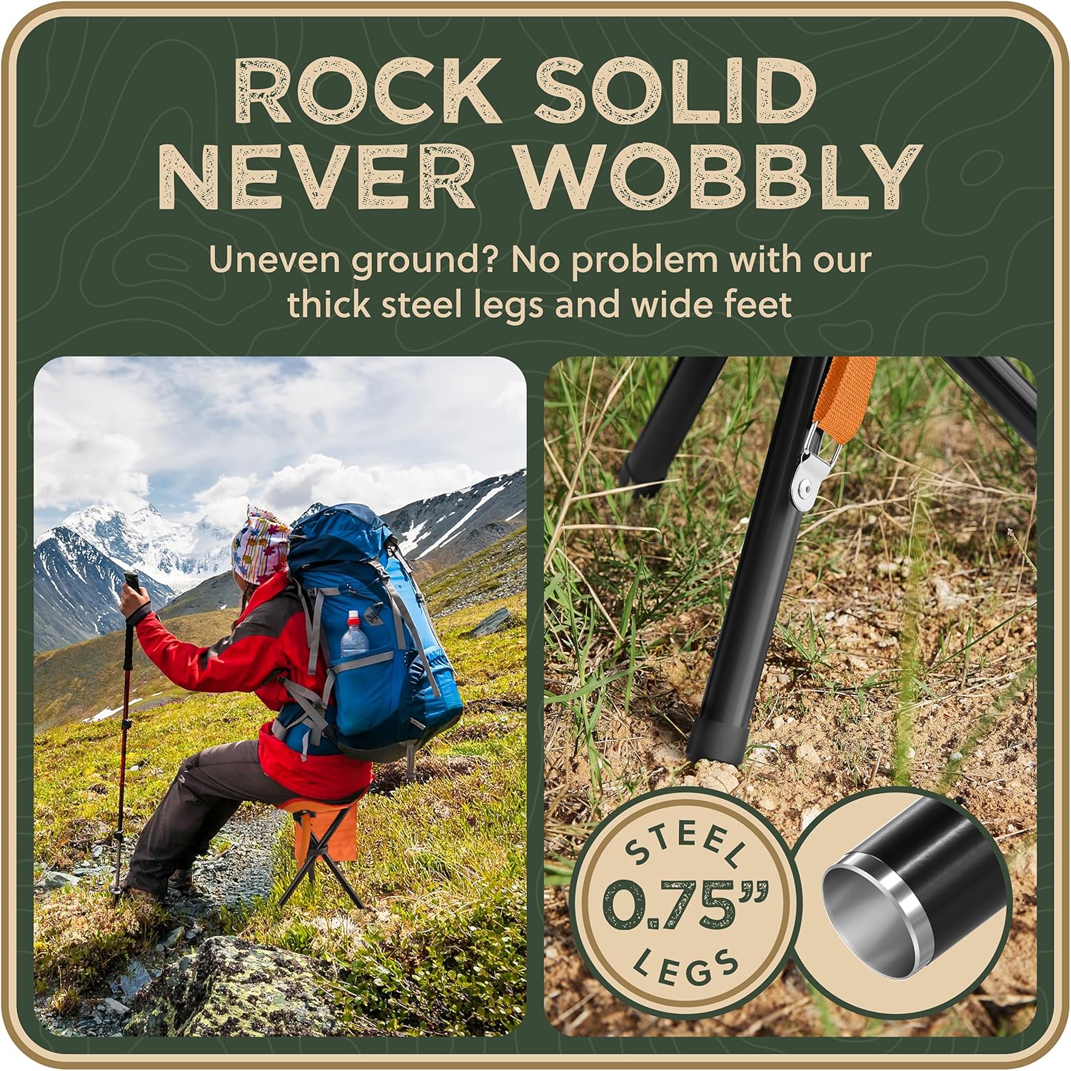- ā ROCK-STEADY: Unwavering stability on uneven terrains on the tripod chairs folding lightweight stool due to the thick 0.75ā steel legs and large non-skid feet. Enjoy a secure, comfortable hunting stools portable seat, on a muddy trail or a sandy beach