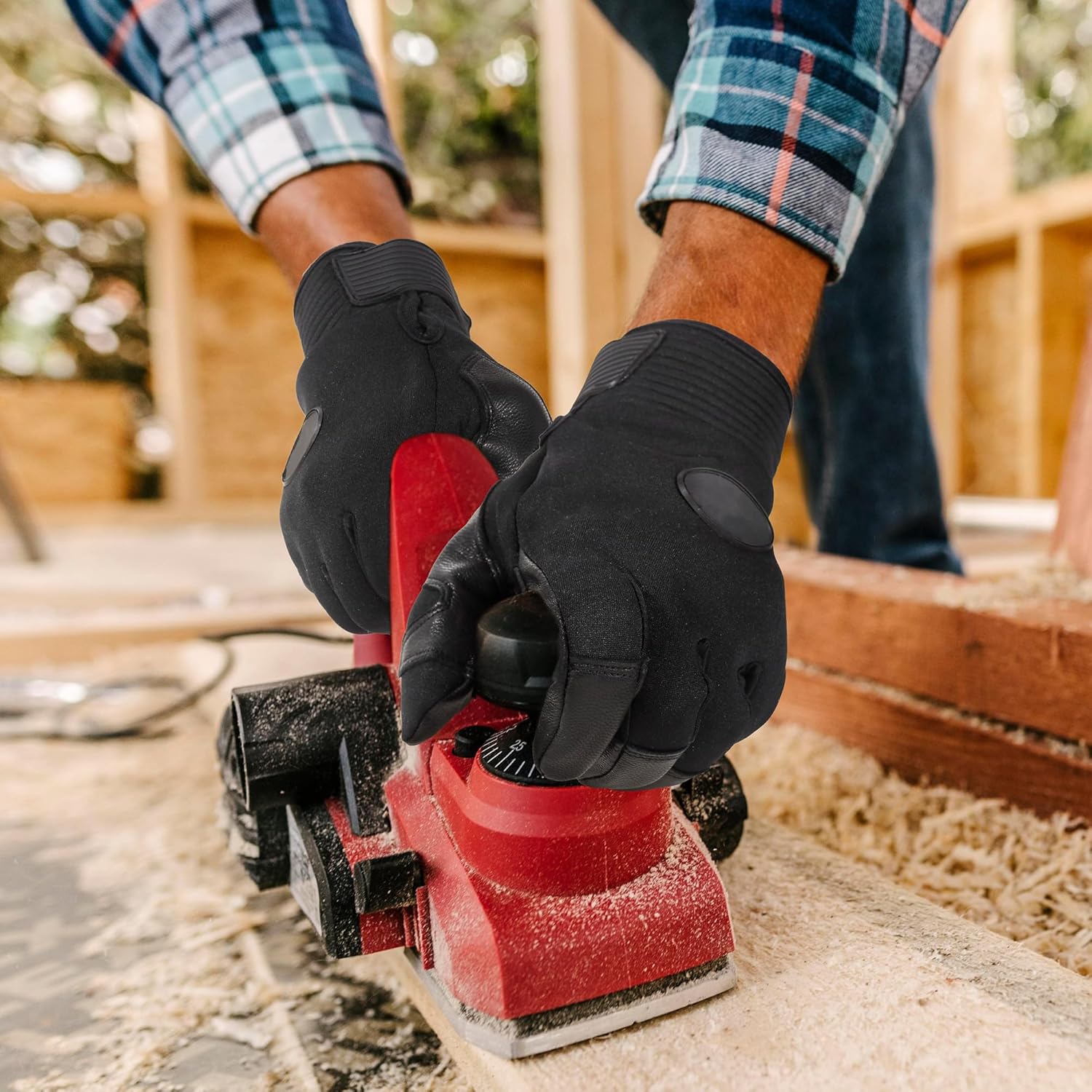 • Leather Work Gloves: The back of the hand is crafted from neoprene to keep you warm and absorb sweat, while the thick yet supple leather ensures both protection and dexterity