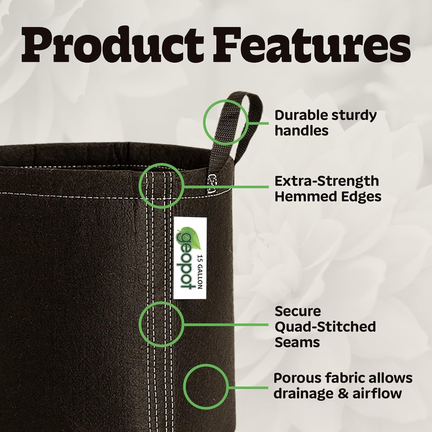 - Breathable Fabric for Healthier Roots Nonwoven fabric promotes airflow and drainage to prevent root rot and support vigorous root development through natural air pruning. No soggy soil, and no stunted growth!