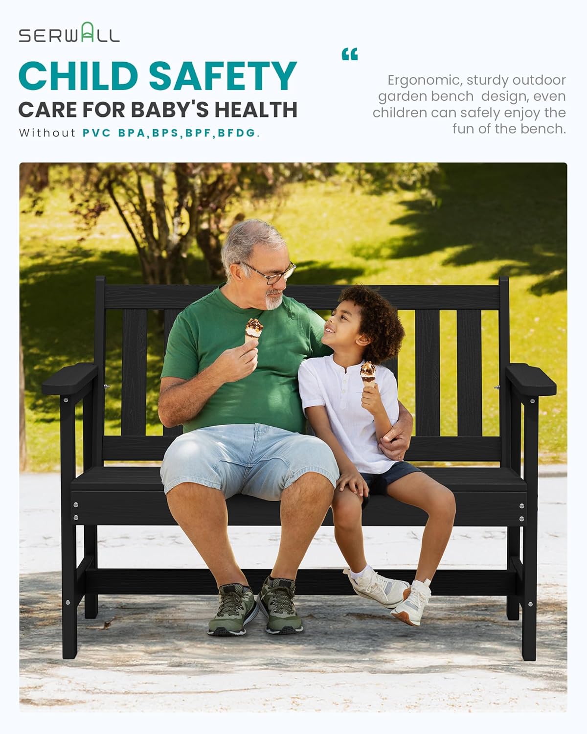 SERWALL Outdoor Bench, HDPE Outdoor Benches Weatherproof, 2-Person Garden Bench with 660 lbs Weight Capacity, Patio Benches for Outdoors, Garden, Porch, Backyard and Park, Black, 2 Pack