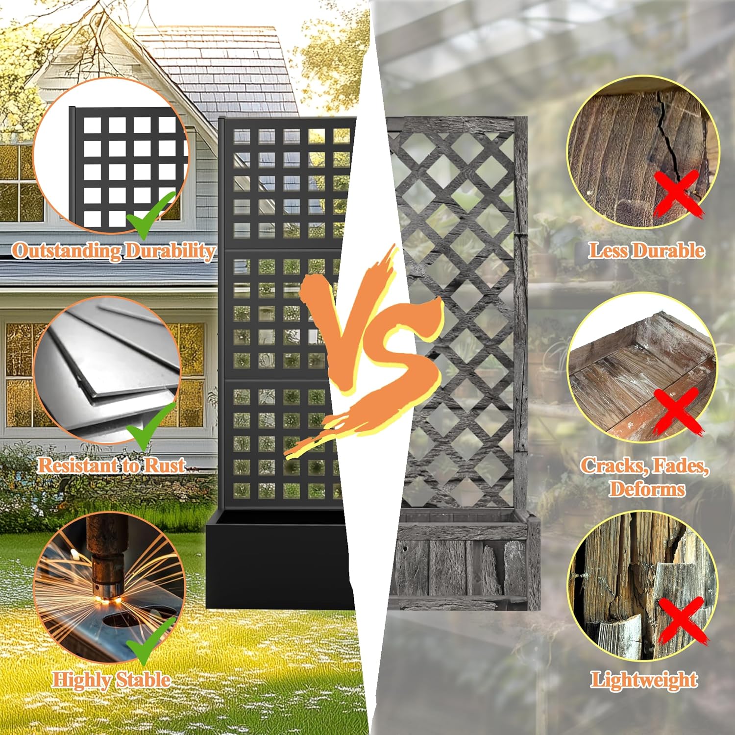 - Versatile Outdoor Solution: This metal planter and trellis combo serves multiple purposes, functioning as a raised garden bed, a flower trellis, and an outdoor privacy screen, making it a versatile addition to any garden.