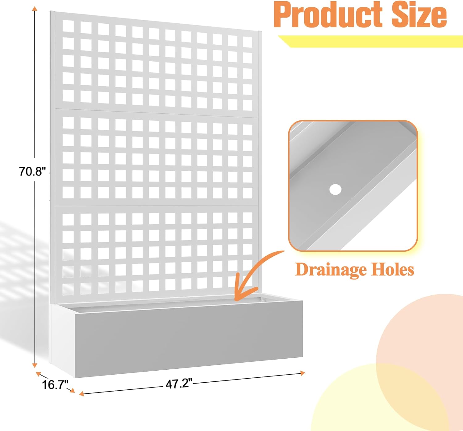 - Built-In Drainage System: The planter box features a 12-inch deep planting bed with drainage holes to prevent waterlogging, ensuring your plants receive the optimal moisture levels for healthy growth.