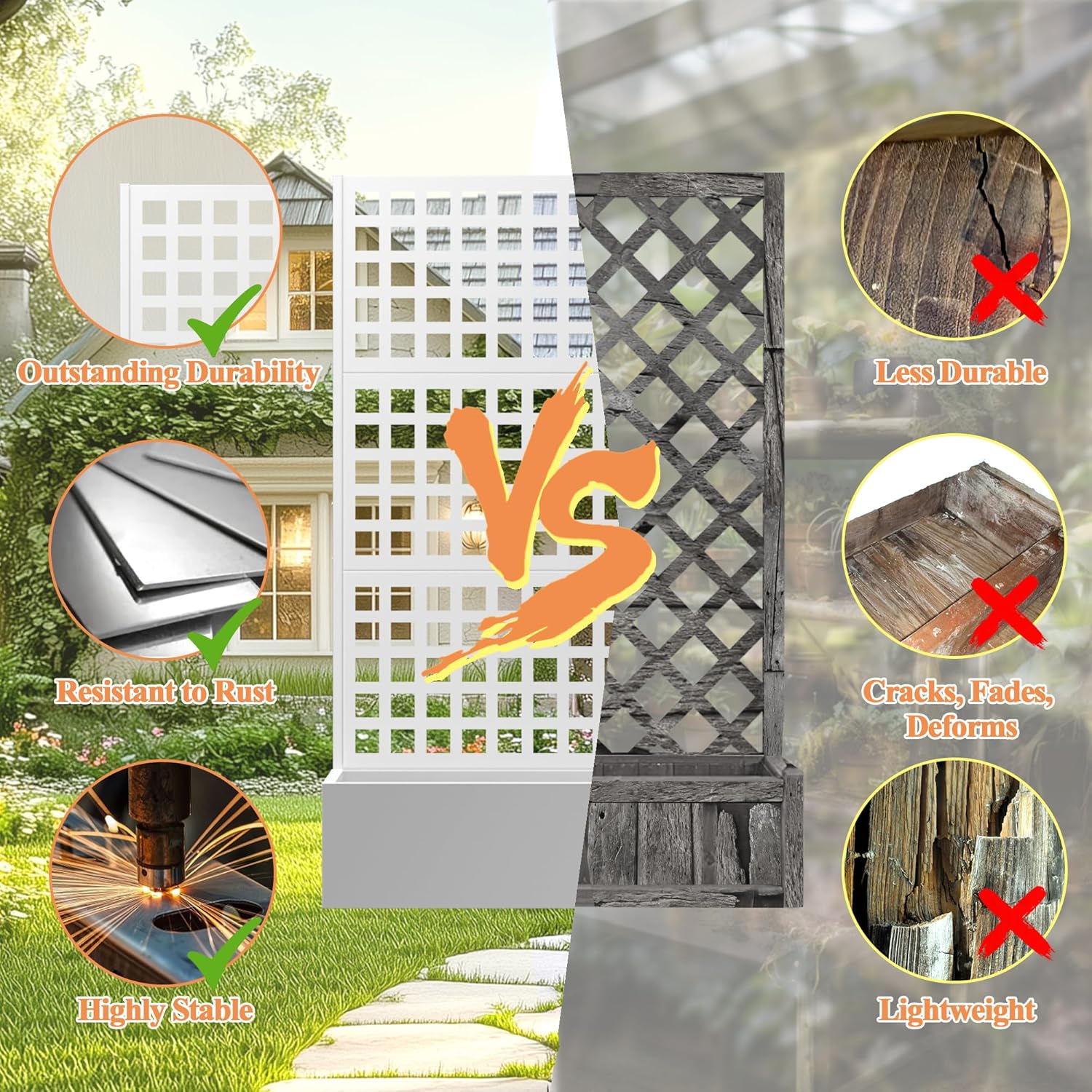 - Space-Efficient Design: Combining a planter box with a trellis, this product offers a space-saving solution ideal for gardening in limited spaces, allowing you to create a beautiful vertical garden even in small areas.