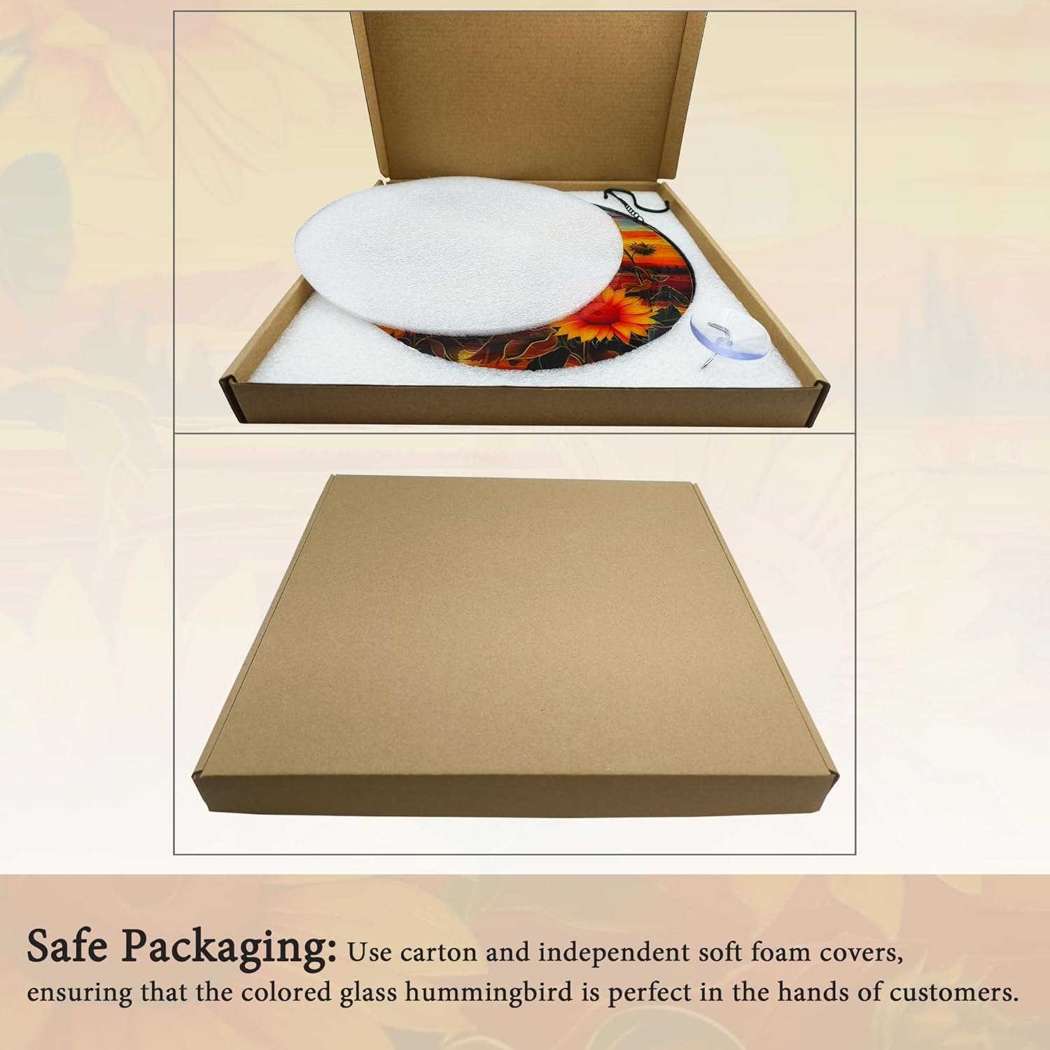 - Satisfactory Service: Stained glass window decoration is packaged separately and covered with soft foam to ensure transportation safety. If you have any questions about the sun catcher glass, please feel free to contact us to solve the problem for you