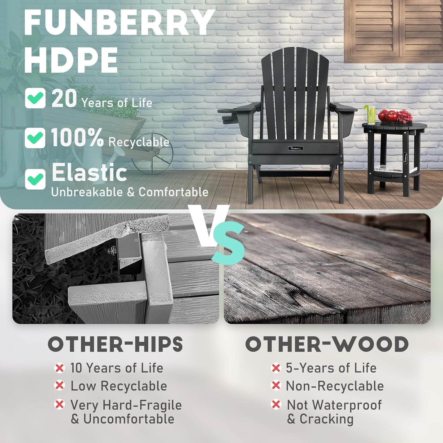 FUNBERRY Outdoor Adirondack Side Table Set of 2, 2-Tier Patio End Tables, HDPE All Weather for Outside