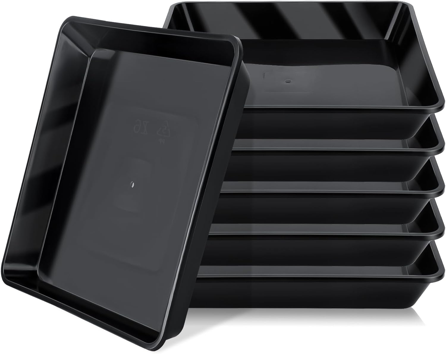 GREANER Plant Trays for Pots Square, 6 Inch Plant Drip Trays, Black Plant Plates to Catch Water Indoor Plants, Plant Tray for Indoor Outdoor Flower Pots and Planters, Bulk(6 PCS)