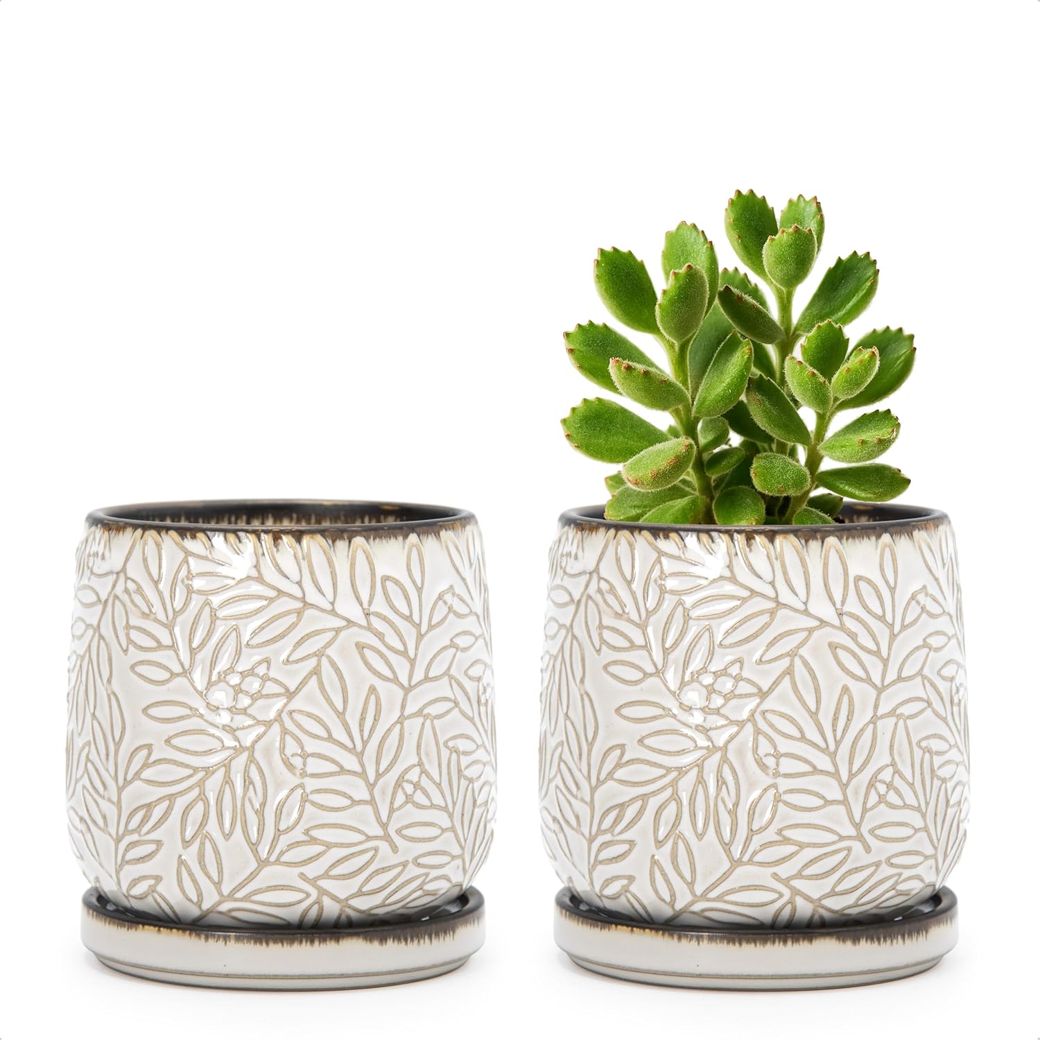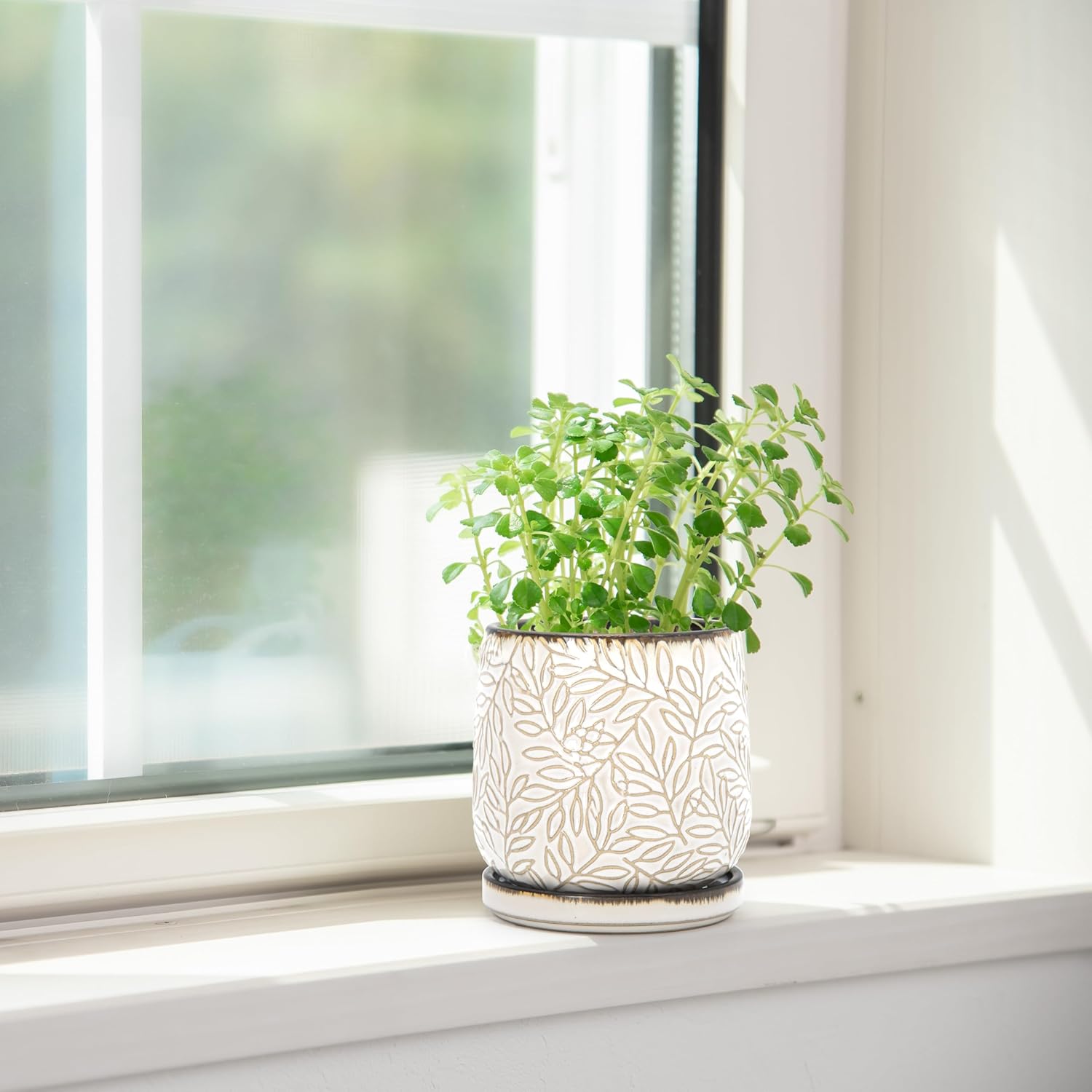 - Drainage Hole and Saucer: Each pot comes with pre-drilled drainage hole and matching ceramic tray to drain excess water.