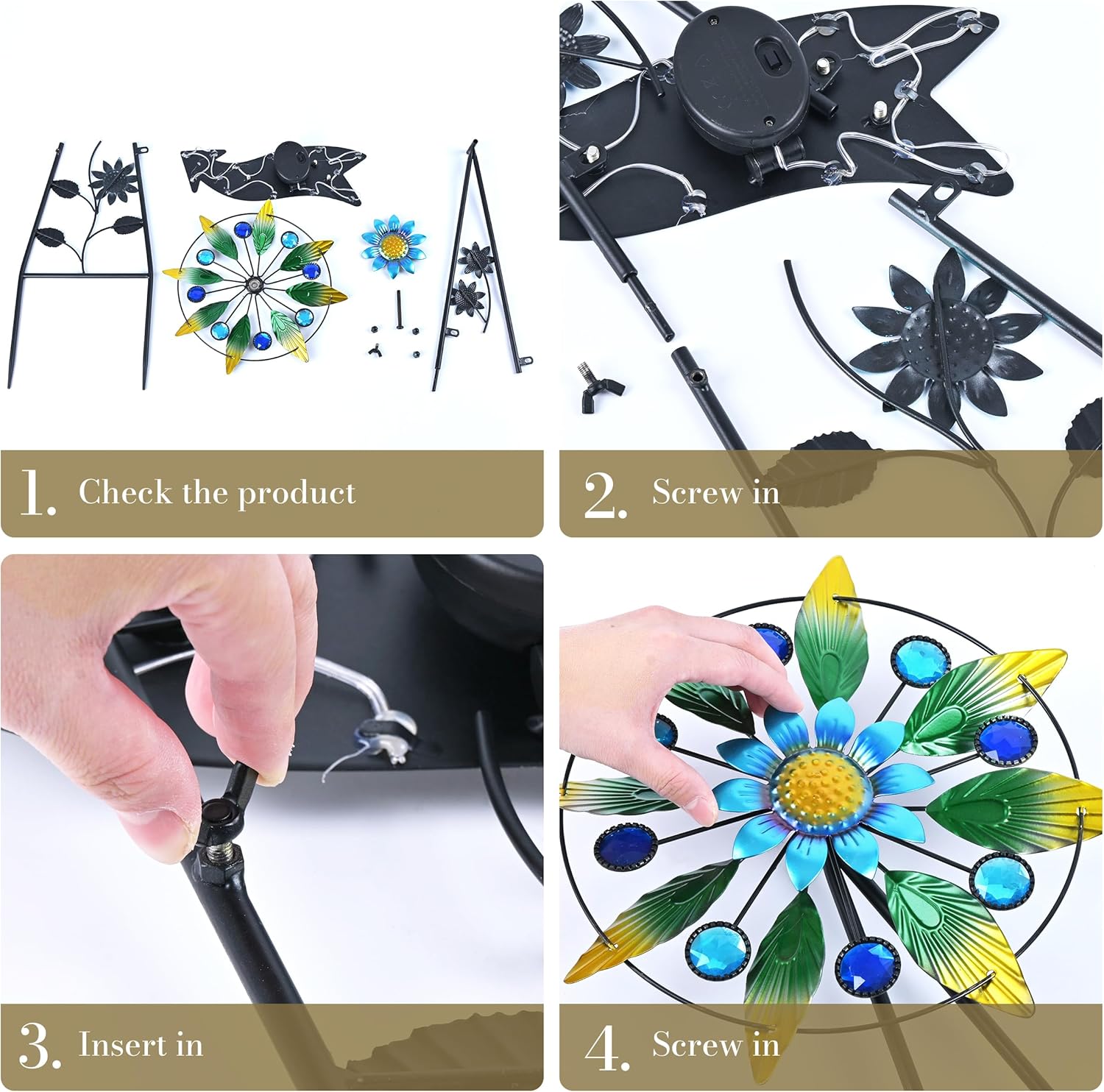 - 【Solar Powered】The Hummingbird windmill is equipped with a solar panel, enabling it to automatically charge during the day and emit a soft, radiant glow at night, with a long-lasting illumination of 6-8 hours.