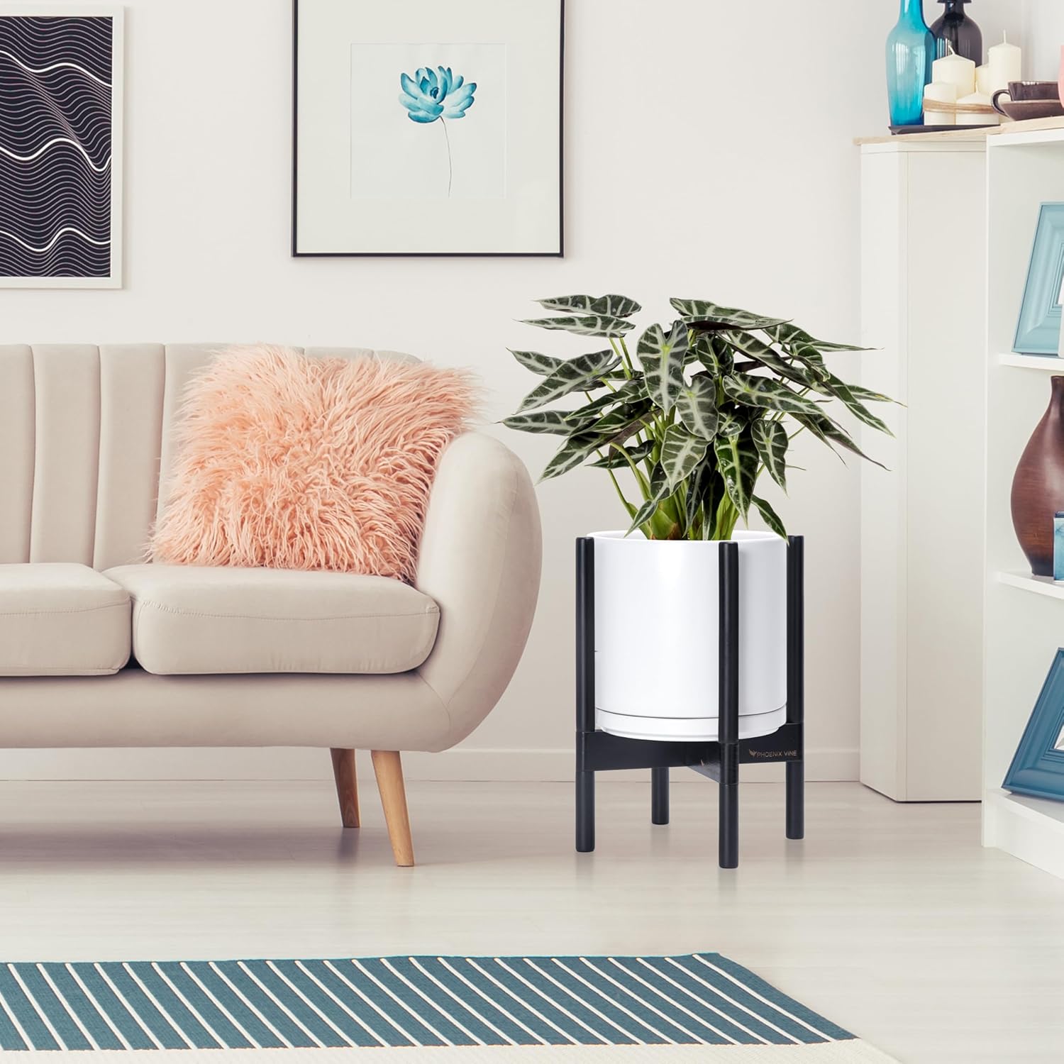 - A Complete Set: Mid-century ceramic planter, combined with a ebony wood stand that match perfectly together and looks great in anywhere.