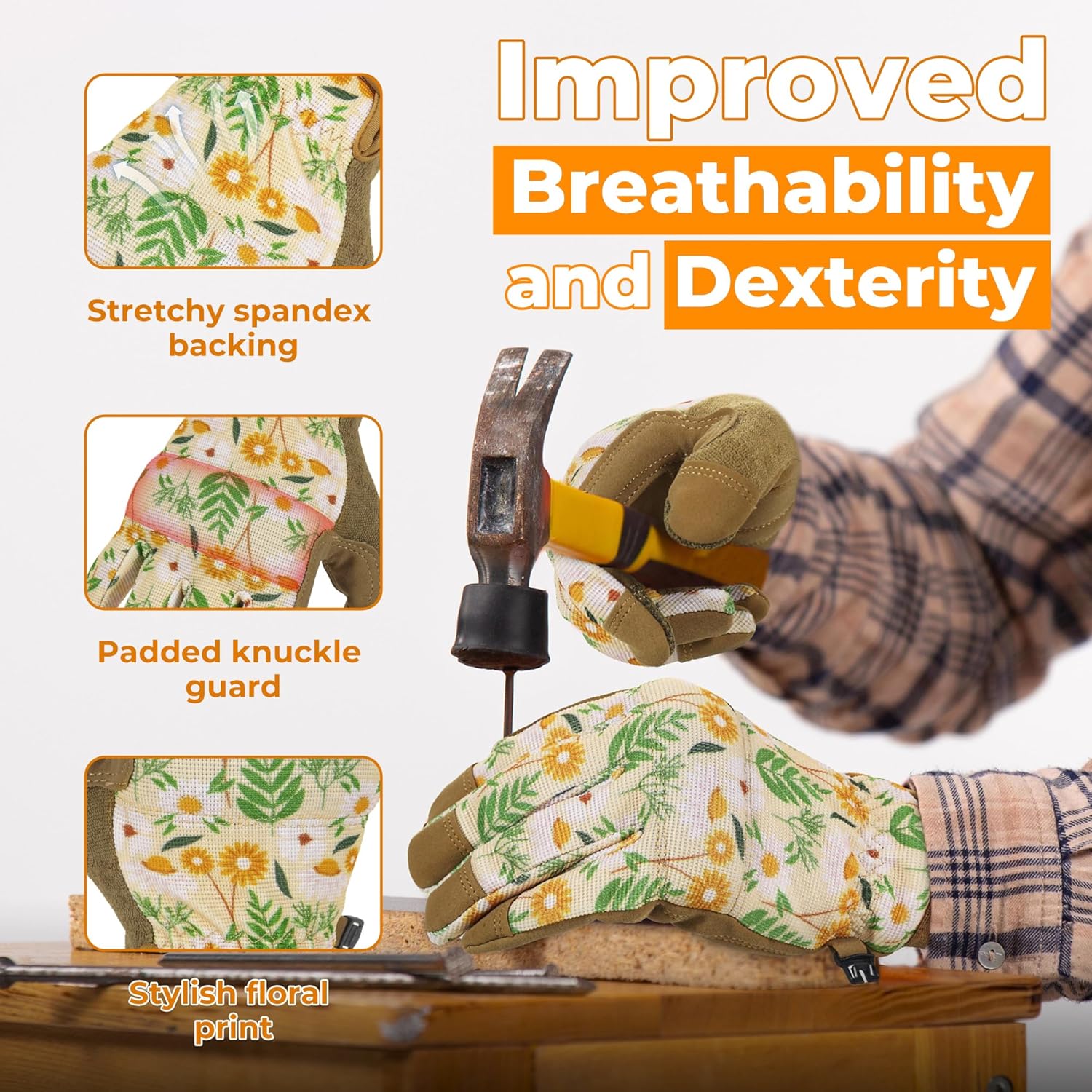 - Durable and Protective Design: Handlandy Work Gloves for Women are crafted with shock-absorbing padding to cushion your hands during heavy lifting or impact work. The reinforce saddle between thumb and index finger enhances the glove's longevity, ensuring they can withstand the rigors of your toughest tasks without damage quickly. These features promise gloves that last while safeguarding your hands from harm