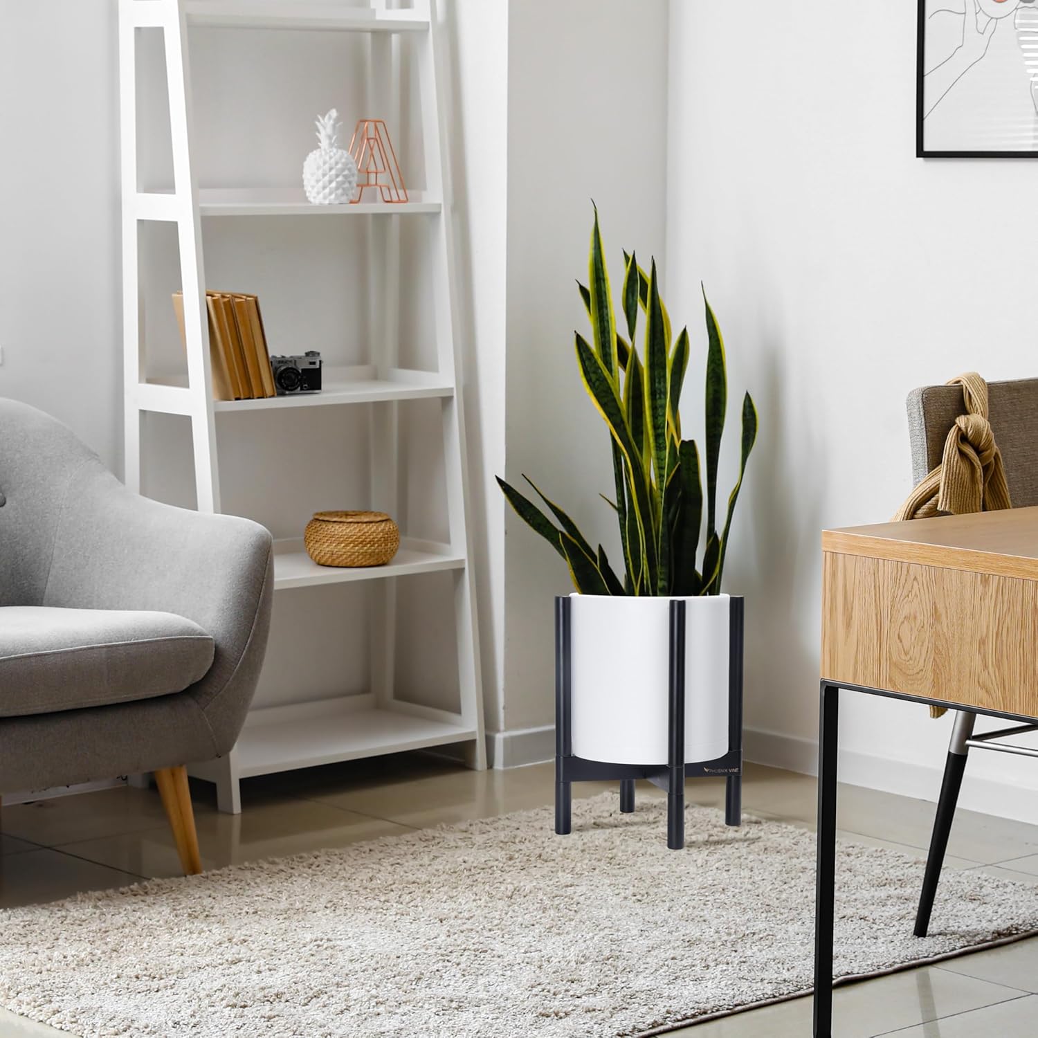 - A Complete Set: Minimalist plastic planter, combined with a sculptural, solid wood stand that match perfectly together and looks great in any home.