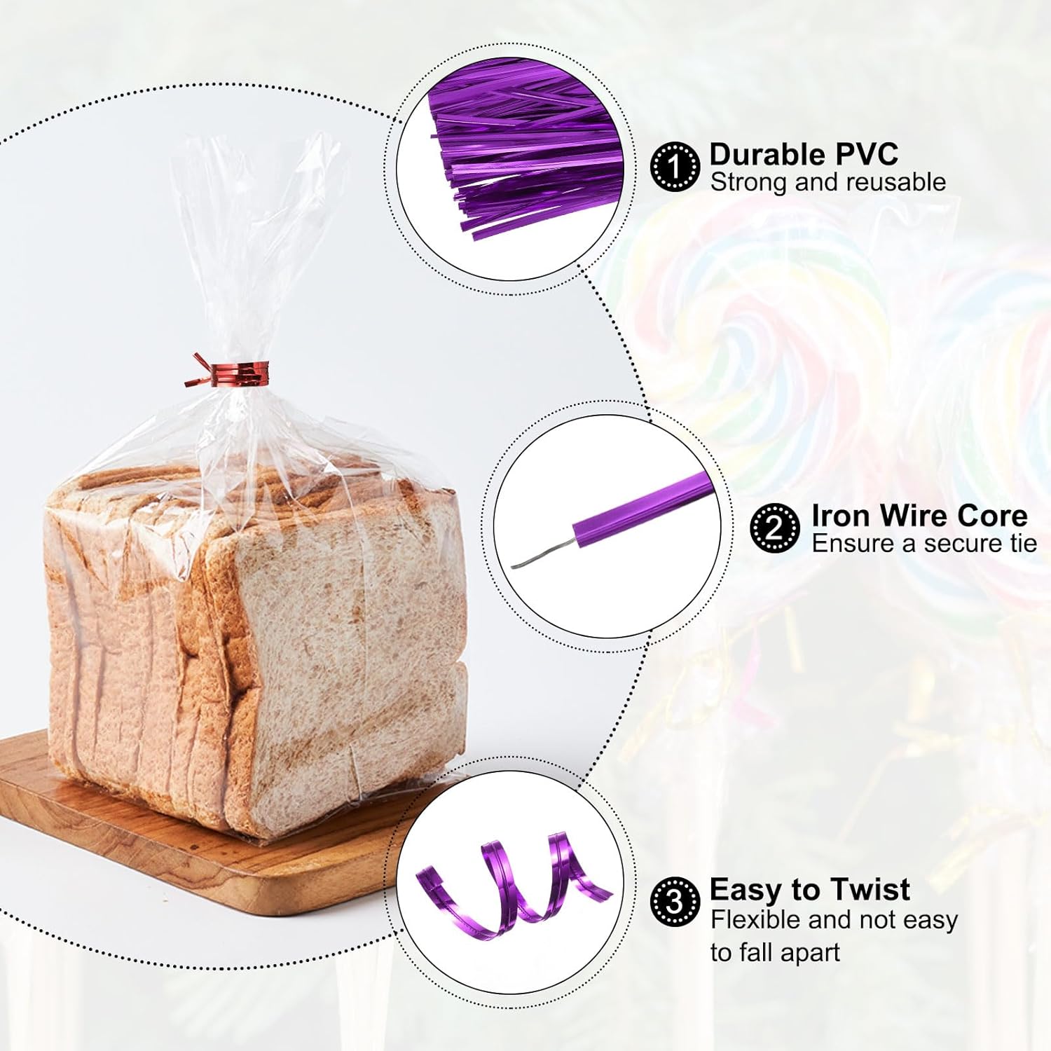 - Material - Made of durable PVC material with iron wire core, the bread twist ties are strong and reusable, which can be twisted flexibly and are not easy to fall apart.