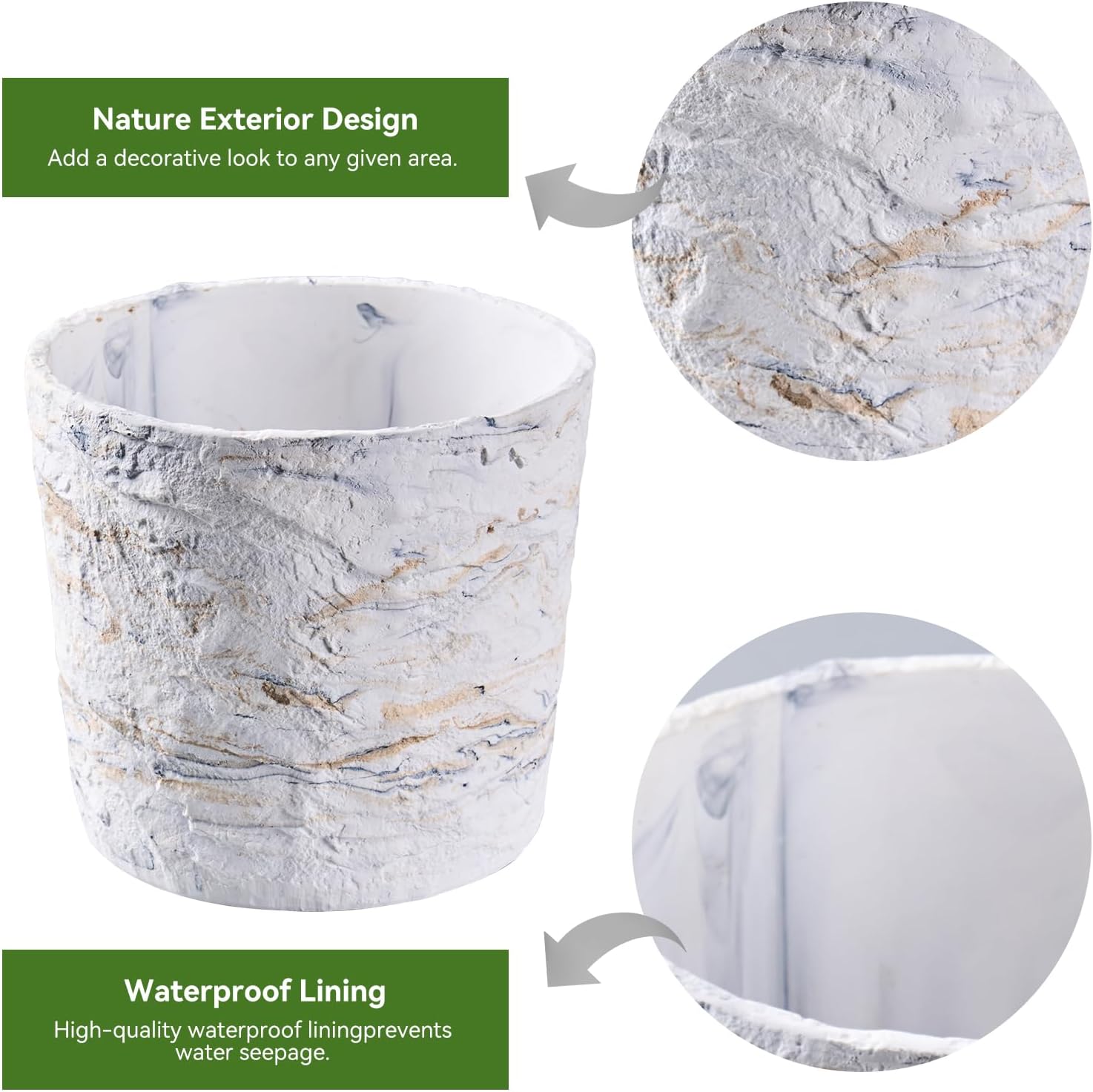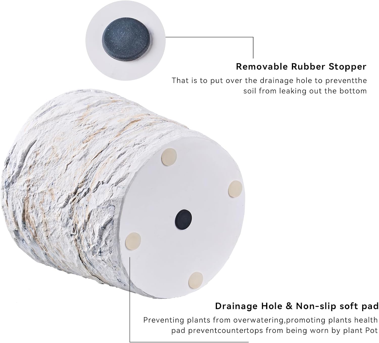 Ekirlin 7 Inch Natural Ore Textures Plant Pot, Resin Outdoor Planters with Drainage Hole, Removable Rubber Stopper and Non-Slip Soft Pad,Weatherproof Decorative Pot for Indoor/Garden Plants