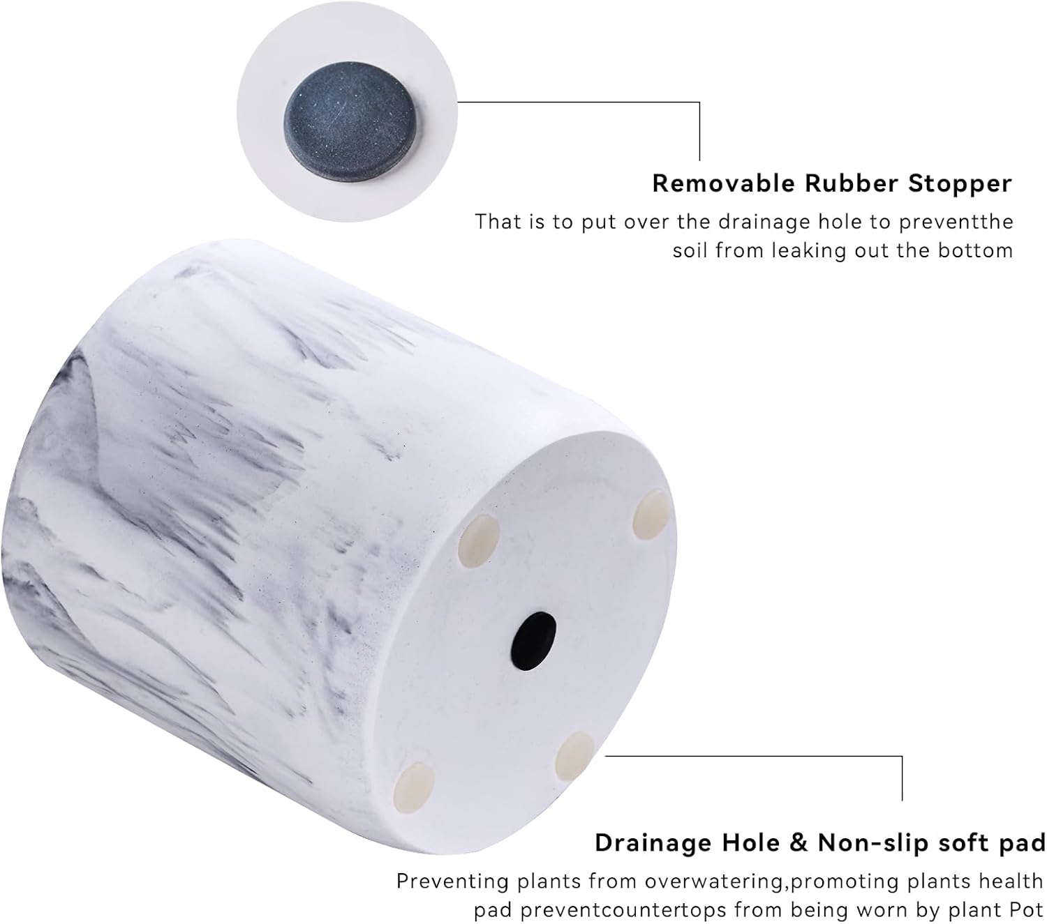 Ekirlin 6 Inch Resin Plant Pot Indoor - Natural Marble Texture Garden Planter with Drainage Hole, Removable Rubber Stopper and Non-Slip Soft Pad, Modern Succulents Containers for Home, Outdoor