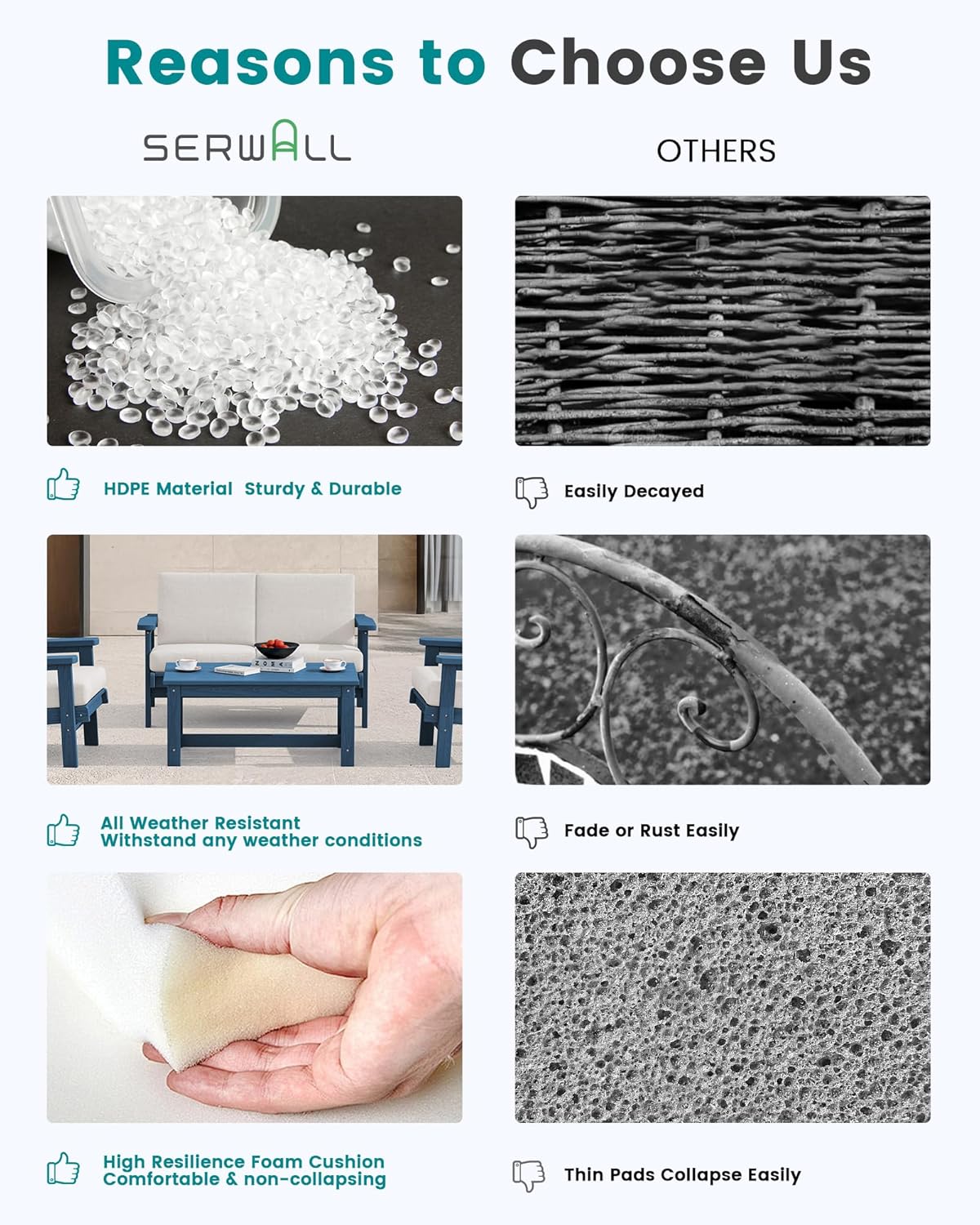 - After-sales Support: We want our customers to be 100% satisfied with serwall outdoor furniture - you can always come to us for any product questions and product care, we are committed to your satisfaction.
