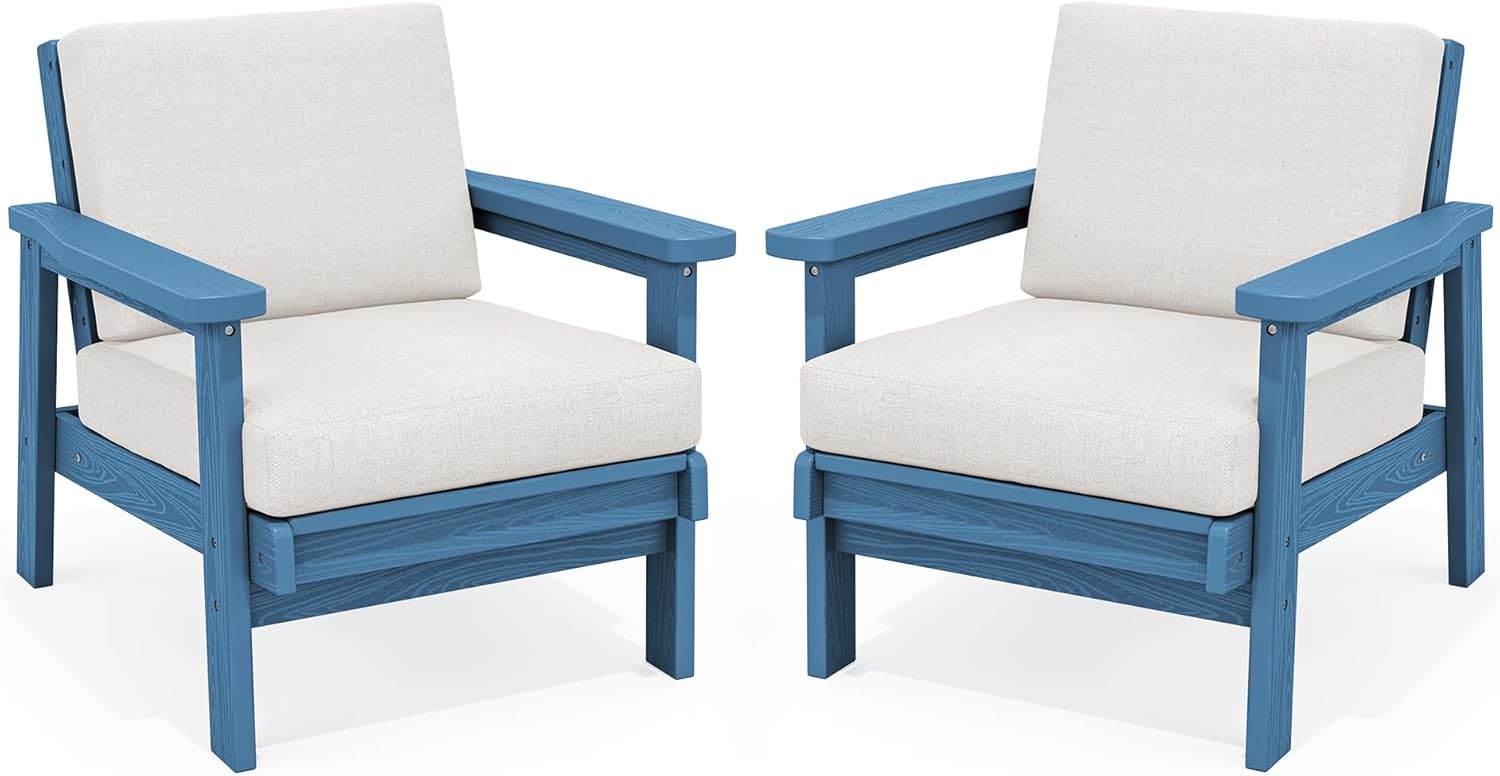 SERWALL HDPE Outdoor Couch Set of 2, Blue Frame and Khaki Cushion