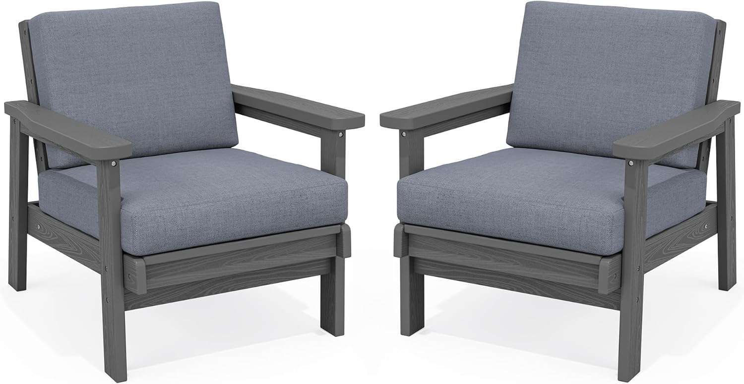 SERWALL HDPE Outdoor Couch Set of 2, Grey Frame and Grey Cushion