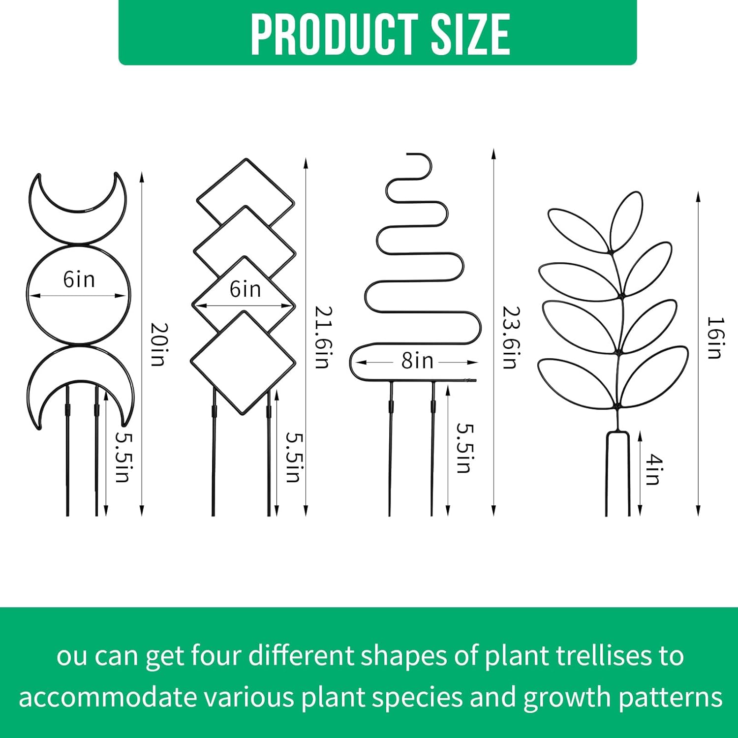- Package Includes--Our package includes 4 assorted metal trellis, perfect for enhancing indoor and outdoor plant decor and providing sturdy support for climbing plants