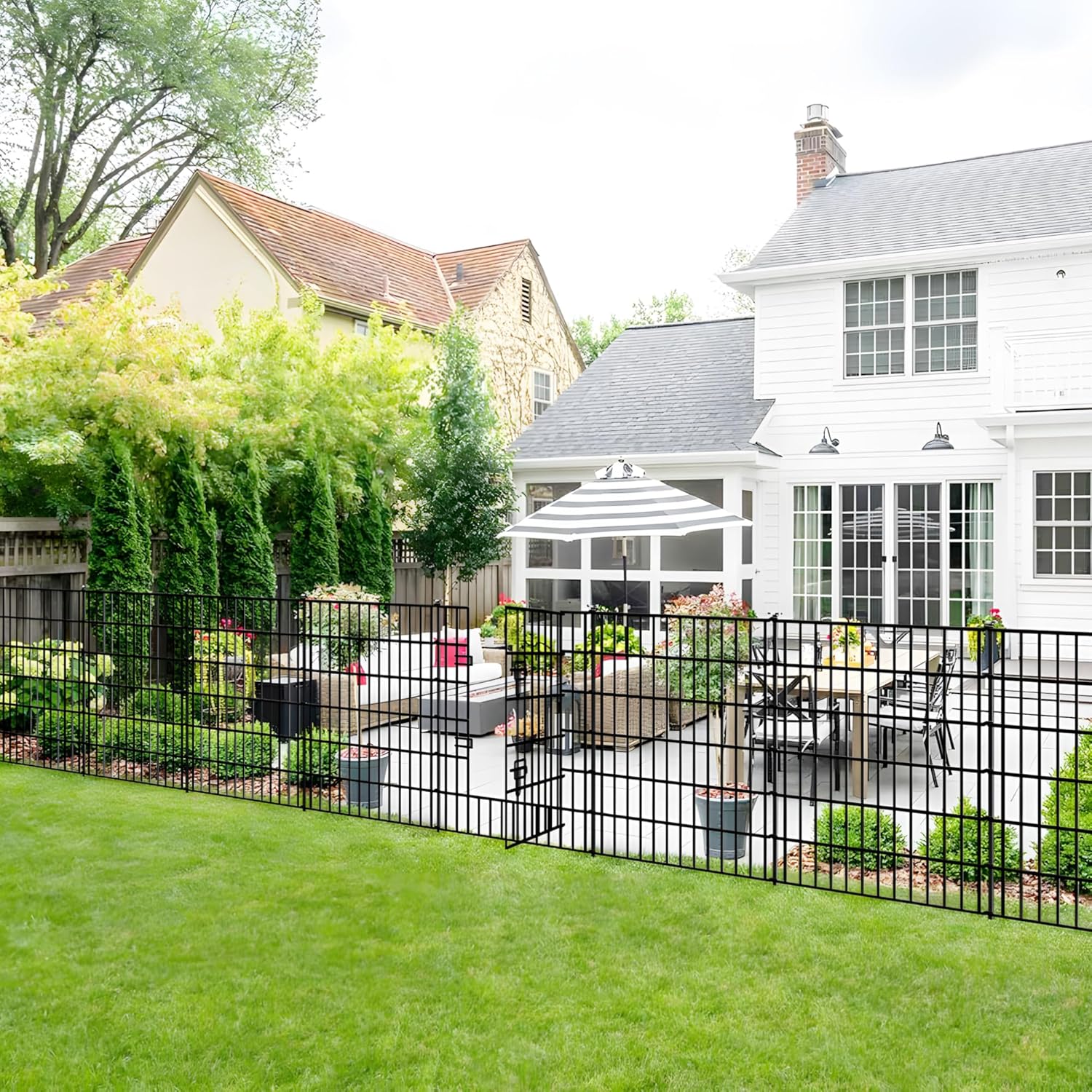 - 【Stylish Design】Our fence outdoor for yard feature a sleek and stylish design that will add a touch of elegance to your outdoor space.The sleek black metal finish adds a modern flair, making it a perfect fit for defining garden borders, creating a safe play area, or keeping pets contained.