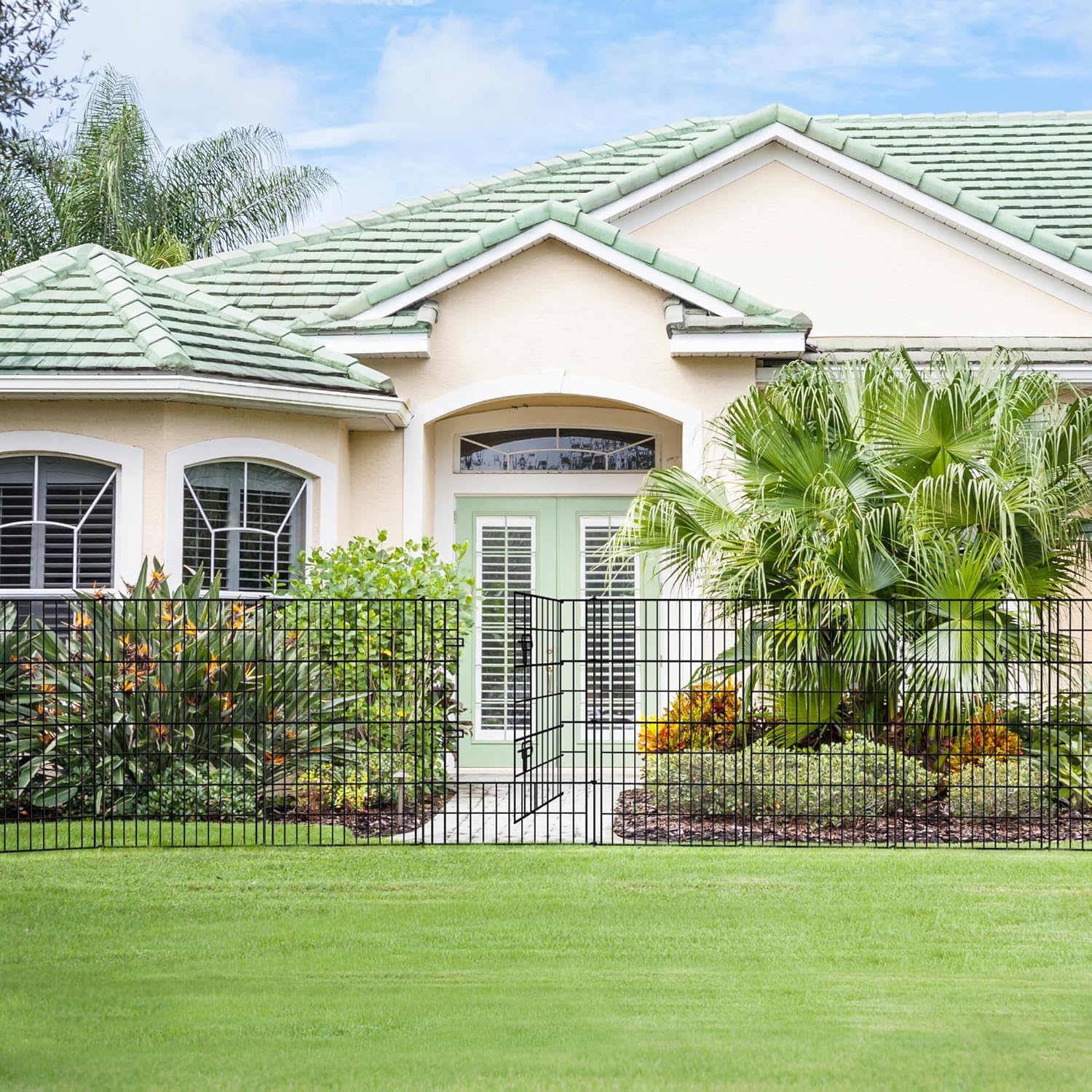 - 【Stylish Design】Our fence outdoor for yard feature a sleek and stylish design that will add a touch of elegance to your outdoor space.The sleek black metal finish adds a modern flair, making it a perfect fit for defining garden borders, creating a safe play area, or keeping pets contained.