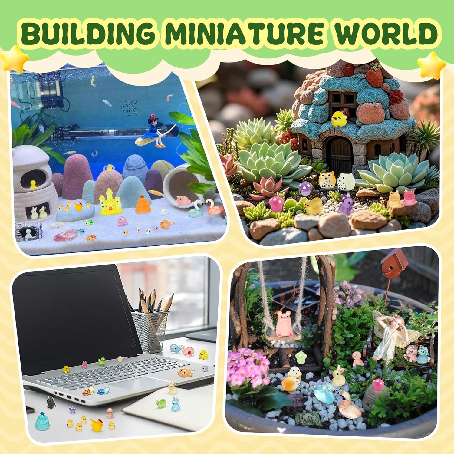 - VALUE AND VARIETY - This extensive pack of tiny resin animals offers exceptional value and variety. It is featuring a diverse array of animals and creatures, featuring adorable designs including tiny dinosaurs, unicorns, snails, frogs, puppies, baby elephants, flamingos, bunnies, turtles, chicks, octopuses, ray, mushrooms, little figurines, mini ducks, fir trees and ice castles, providing ample options for decorating your dream world, ensuring a rich and imaginative collection.