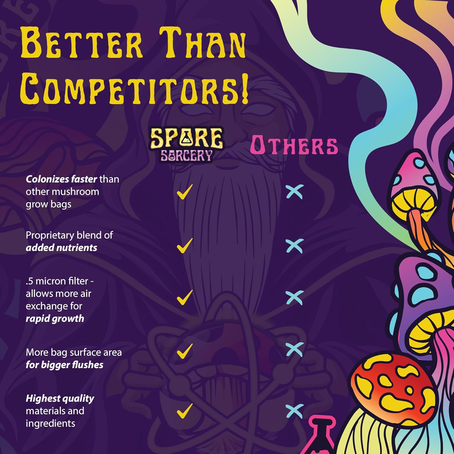 - Sterile & Hassle-Free Growing: Our lab-grade grow bags feature an extra-large 0.5-micron filter patch for increased airflow and a built-in injection port for inoculation. No monotub required - grow directly in the bag!