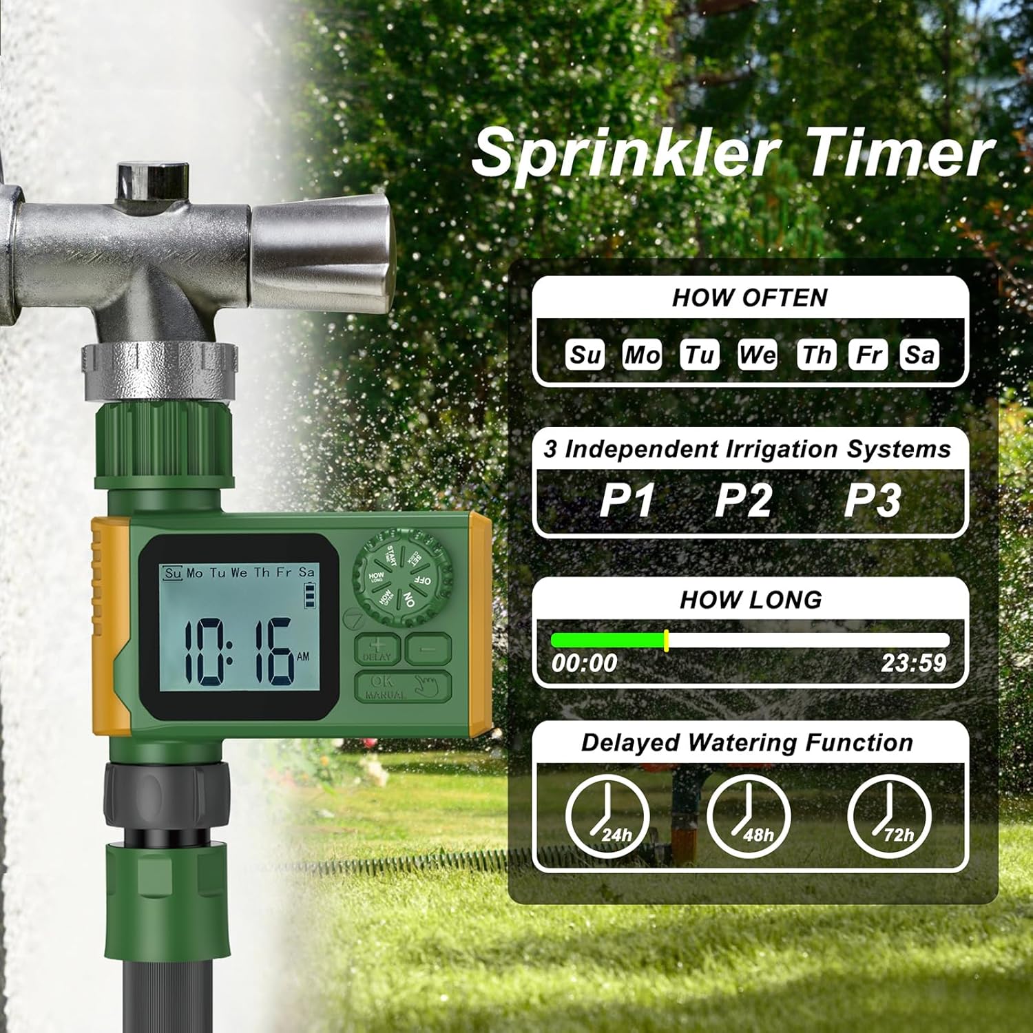 Garden Hose Timer Automatic Programmable - Digital Water Timer with LCD Display, Rain Delay & Manual Modes for Lawn Sprinkler System, Irrigation for Yard