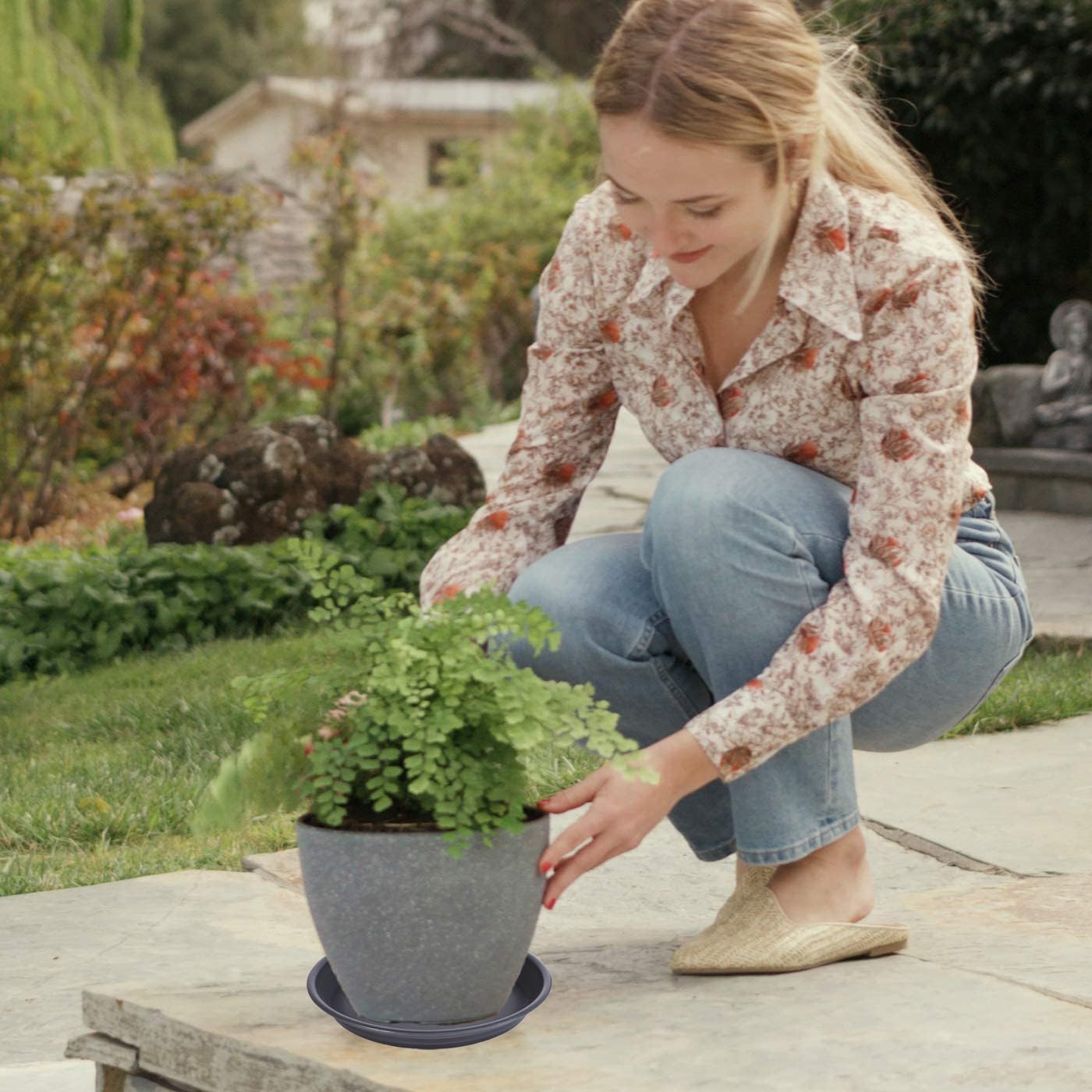 - Total 2 Plant Sauces: The package comes with 2 12-inch plant trays (upper diameter 12.7 inch, inner diameter 10.5 inch). Please check the size of the flowerpot before purchasing.