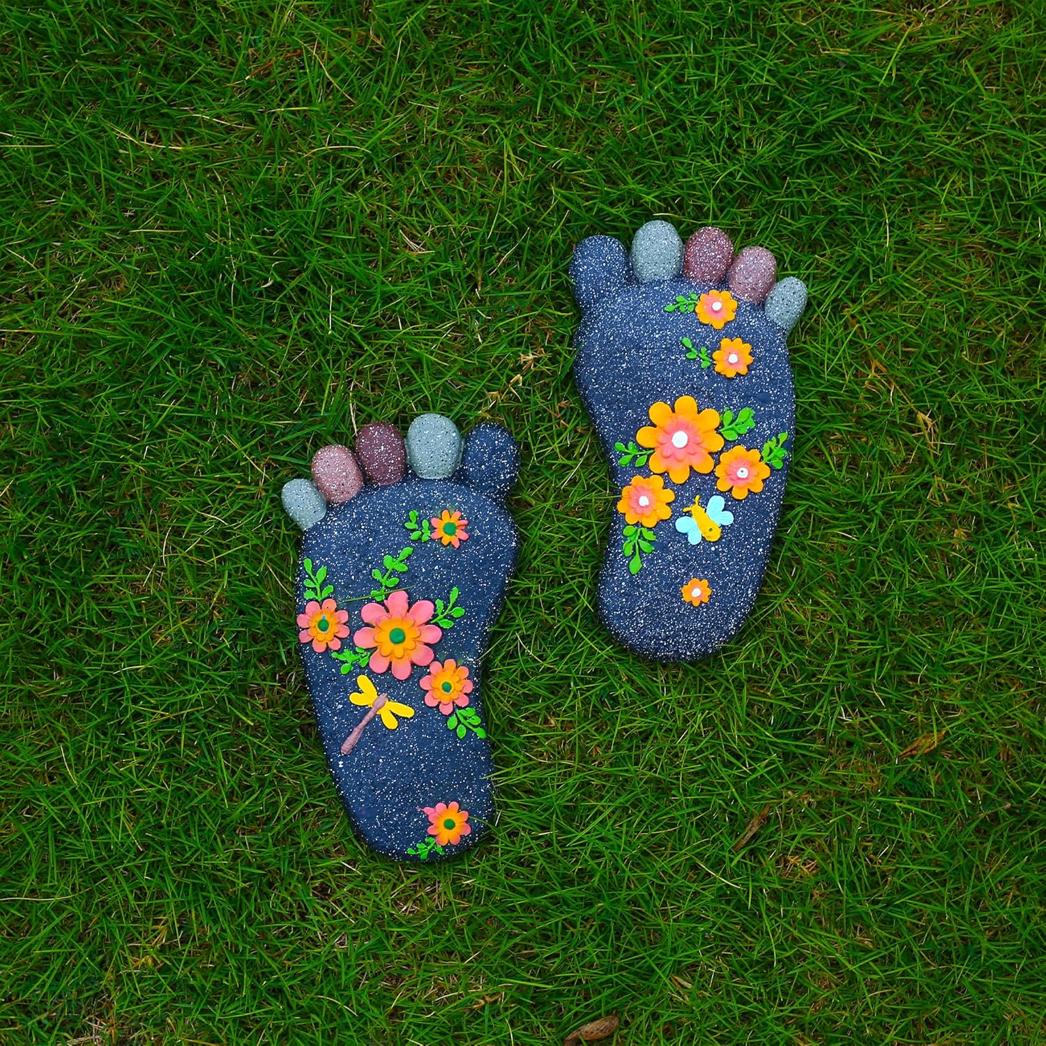 Stepping Stones Garden Decorative Stones for Patio, Deck, Garden or Sidewalk Home Decor Footprint Shaped Stepping Stones Set of 2 (Dark Grey)