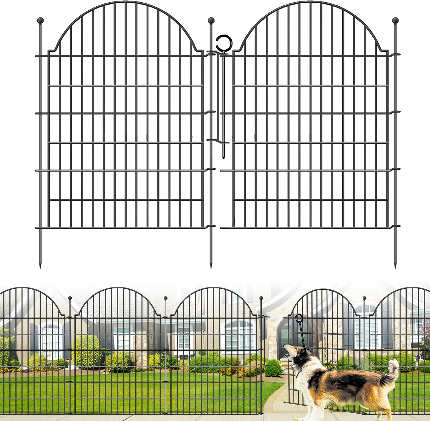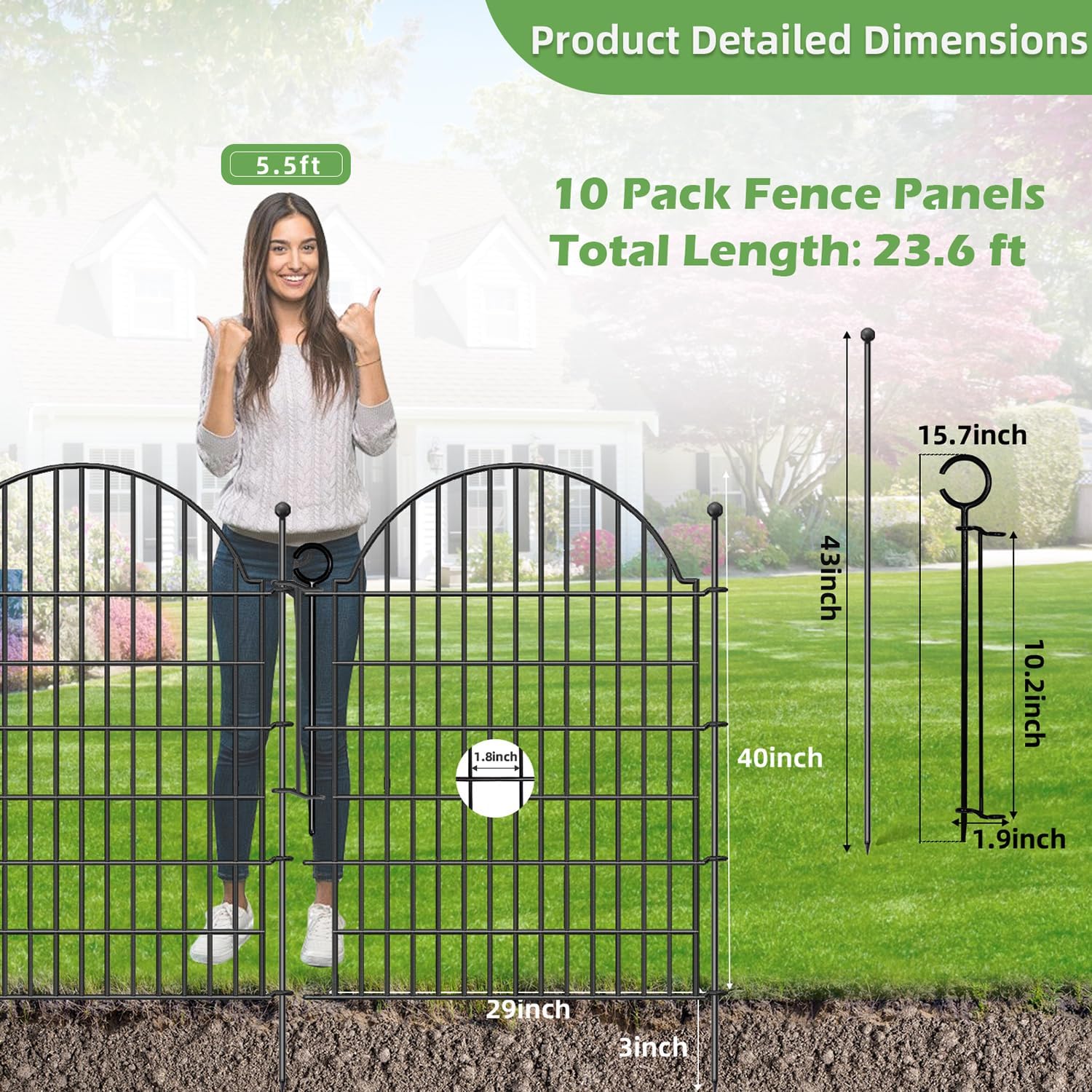 Decorative Metal Garden Fence with Gate Lock 10 Panels, 40in (H) x 23.6ft (L) No Dig Dog Fence Outdoor for Yard, Temporary Rustproof Metal Wire Rabbit Dog Garden Border Fencing for Patio