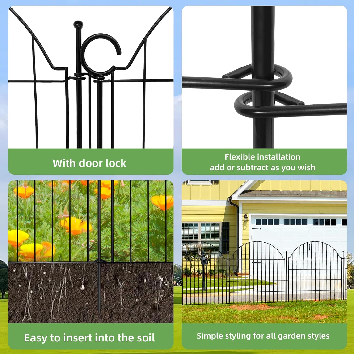 - 【Detailed Dimensions】Blingluck garden fence includes 5 pieces of fence panels measuring 40" H & 29" W, 6 metal stakes that are 47 " H, and a gate lock that can be individually removed for use. The Blingluck decorative garden fencing has a total height of 47 inches (7'' metal stakes in soil ), with a 1.8-inch fence gap. Total Length is about 11.8 ft. Easier and more sturdy installation