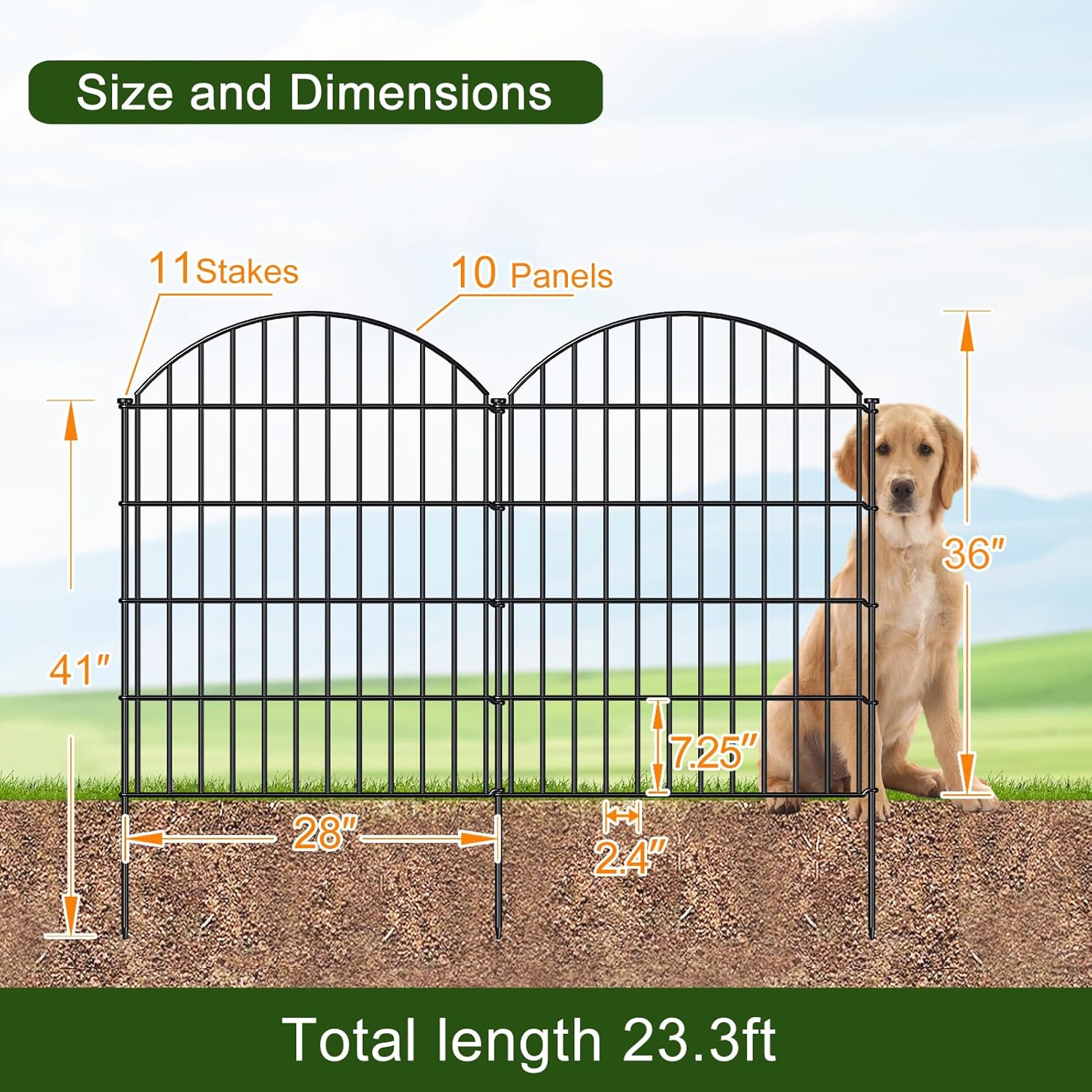 Metal Garden Fence 36in (H) x 23.3ft (L), 10 Panels + 11 Stakes Dog Fences Border Fence Animal Barrier, No Dig Garden Fencing for Yard Flower Bed Lawn Patio Outdoor, CTW3610 Black