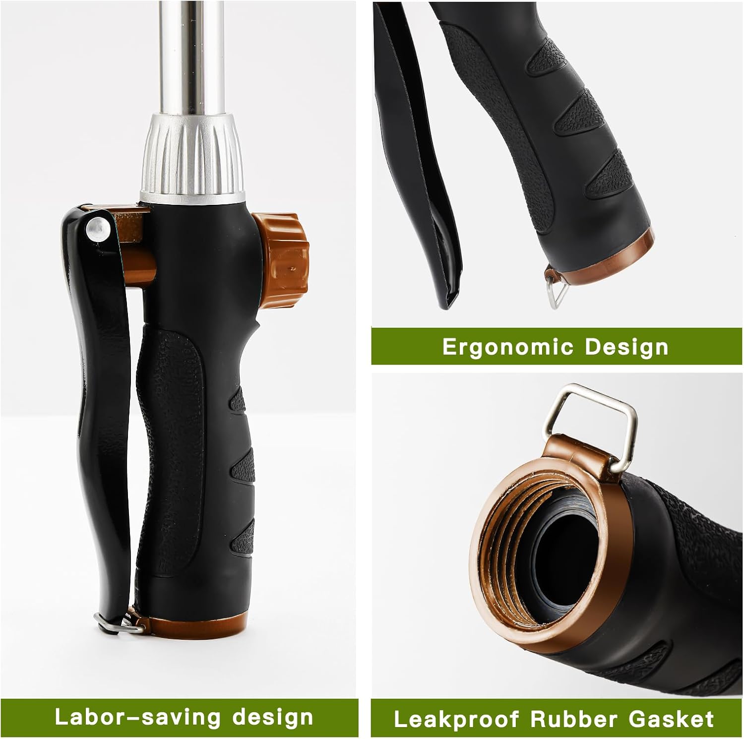 GREEN MOUNT Watering Wand, Heavy Duty Garden Hose Wand with 8 Spray Patterns, 16-Inch Hose Sprayer Nozzle with Flow Control, Ideal for Lawn and Garden Use, Bronze