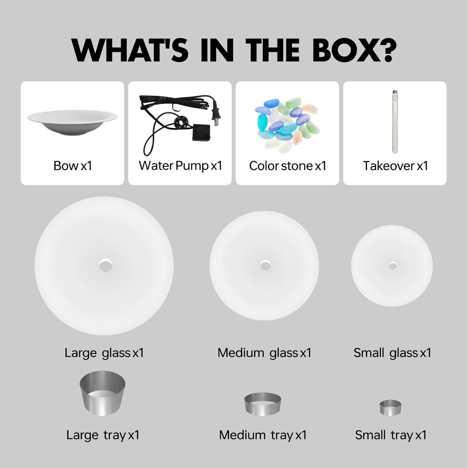 - 【Meditation Fountain】Our tabletop fountain does not have a complicated install process, follow the install instructions to assemble it perfectly. Comes with LED light submersible pump that continuously circulates the water. After installation, plug the power cord and you'll get a beautiful meditation fountain.