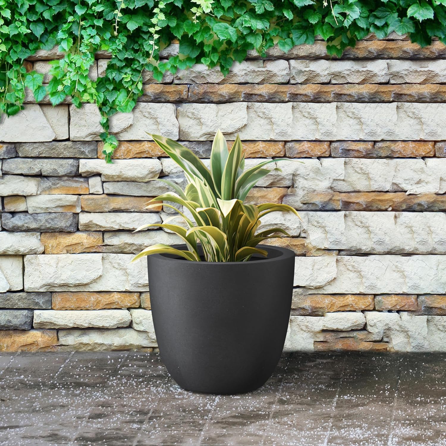 Kante 14 Inch Dia Round Concrete Planter, Indoor Outdoor Large Plant Pot with Drainage Hole and Rubber Plug for Home Patio Garden, Black