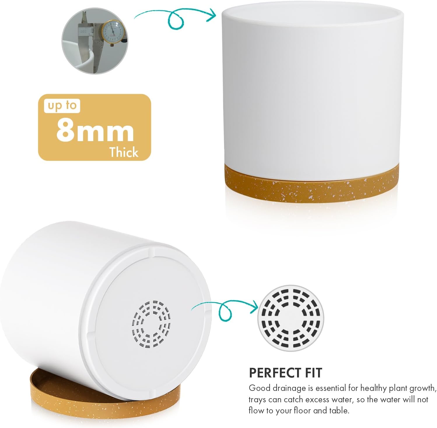 - 【Drainage Holes & Trays】 Excess water flows out of the drainage holes and plant pot saucers collect the overflow to prevent overwatering and flooding, this design allows the plastic planter to protect the plants and soil, keep the surrounding area dry and easy to clean
