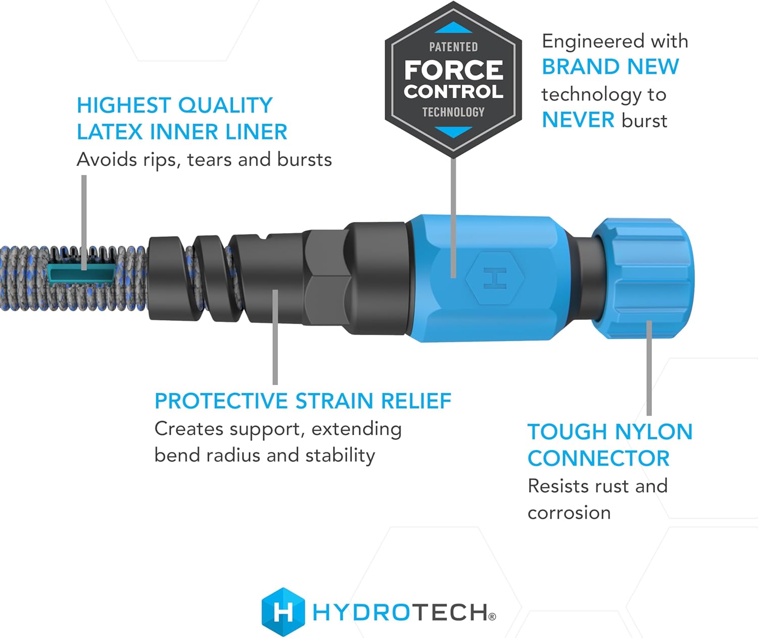 HydroTech 5/8" 25 ft Expandable Garden Hose - Flexible, Lightweight, Durable and Burst-Proof Hose with Reinforced Latex Core and Solid Brass Fittings - Great for Lawn Care, Garden, and Car Washing